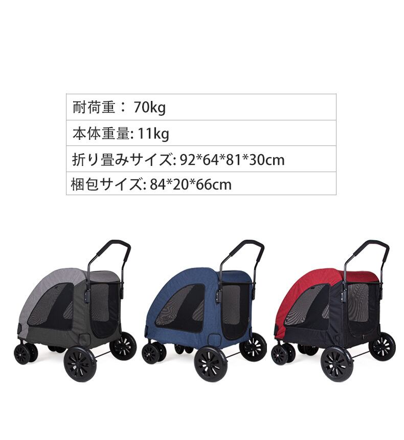 大切な愛犬を快適に運ぶために設計された「ペットカート大型犬 中型犬 4輪 折りたたみ 自立 コンパクト ドッグカート ペットキャリー」。お散歩や旅行のお供に最適で、折りたたみ式なので収納も便利。デザインはシンプルでありながら洗練されており、どんなシーンにもマッチするスタイリッシュな仕上がりです。