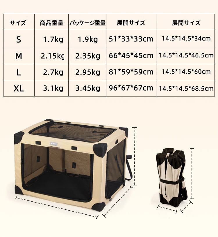 大切な愛犬を快適に運ぶために設計された「折り畳めコンパクト ペットキャリー」。旅行のお供に最適で、折りたたみ式なので収納も便利。デザインはシンプルでありながら洗練されております。