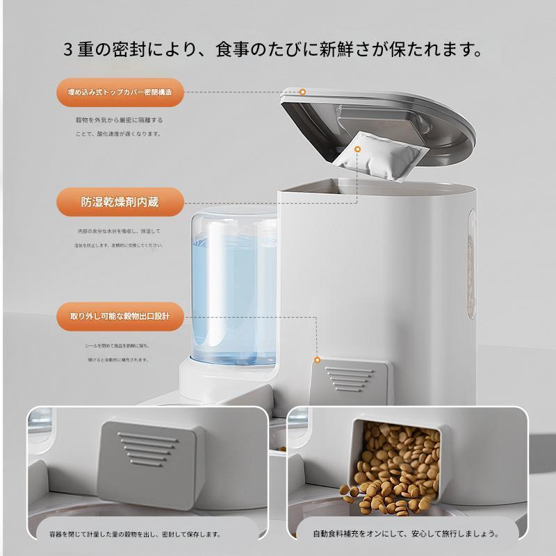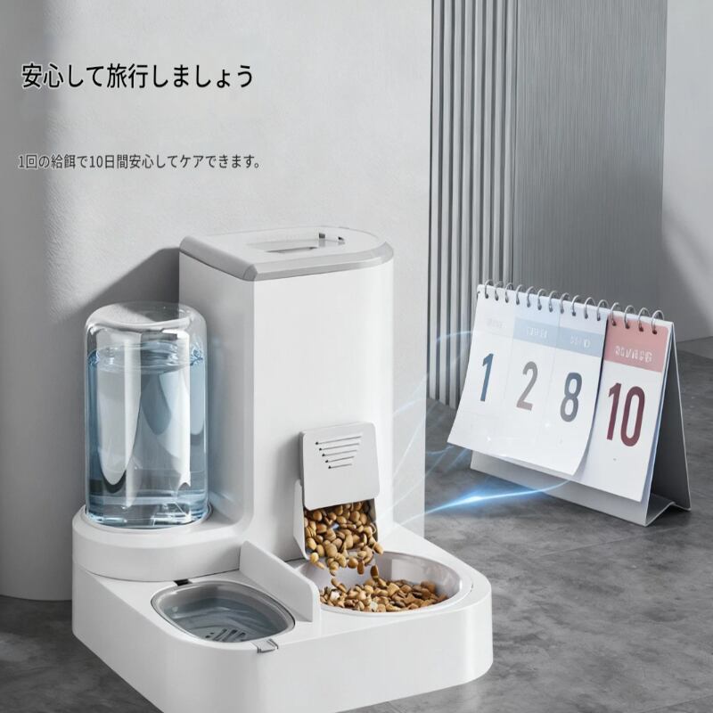 この2in1 自動給餌・給水器があれば、その心配ともさようなら!留守中の食事管理をサポートして、あなたもペットも、もっと快適な毎日を過ごせます.