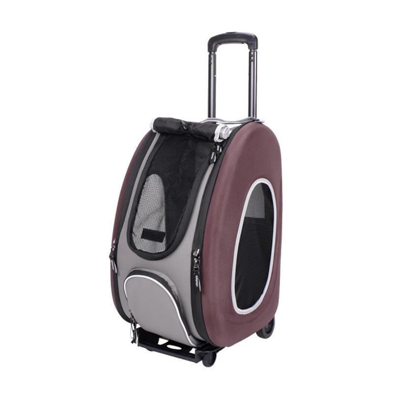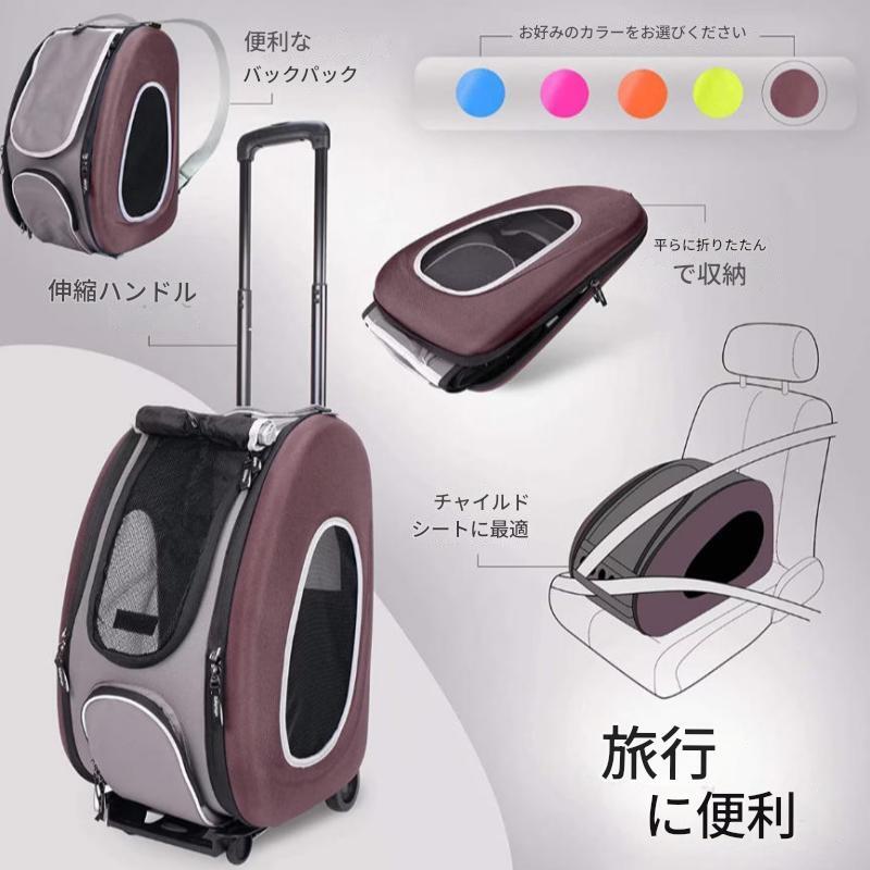 ●この5 in 1ペットキャリアは、ショルダーバッグ、バックパック、チャイルドシート、ベビーカー、キャスター付きキャリアとして多機能です。頑丈なキャスターで操作しやすく、片手で簡単に折りたたむことができます。