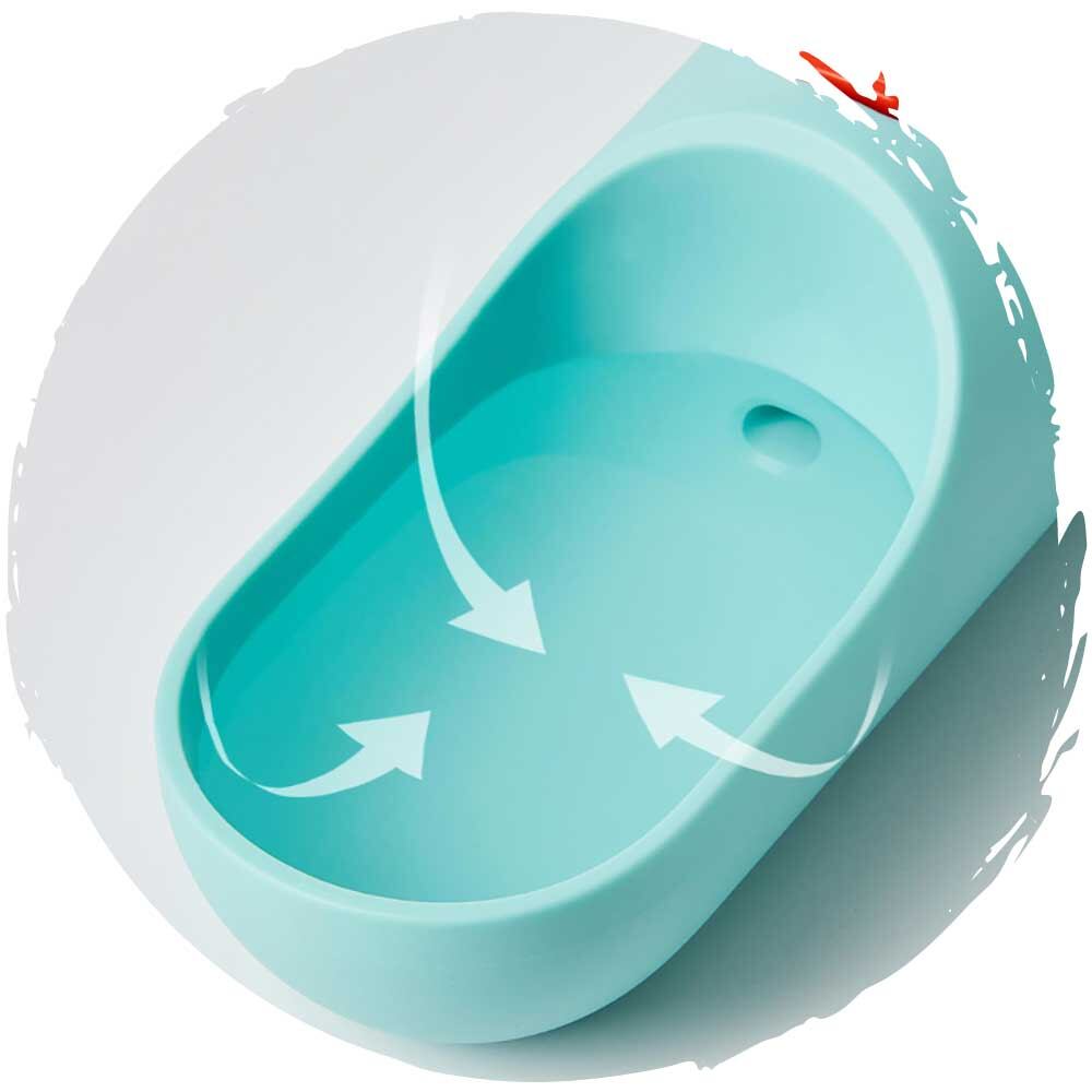 幅650mmのウォータートラフは、水容量が大きく、短鼻で口元が広い犬の口腔構造にもフィットするため、より快適に飲水できます。飲み口は60%大きくなり、水の流れが速くなりました