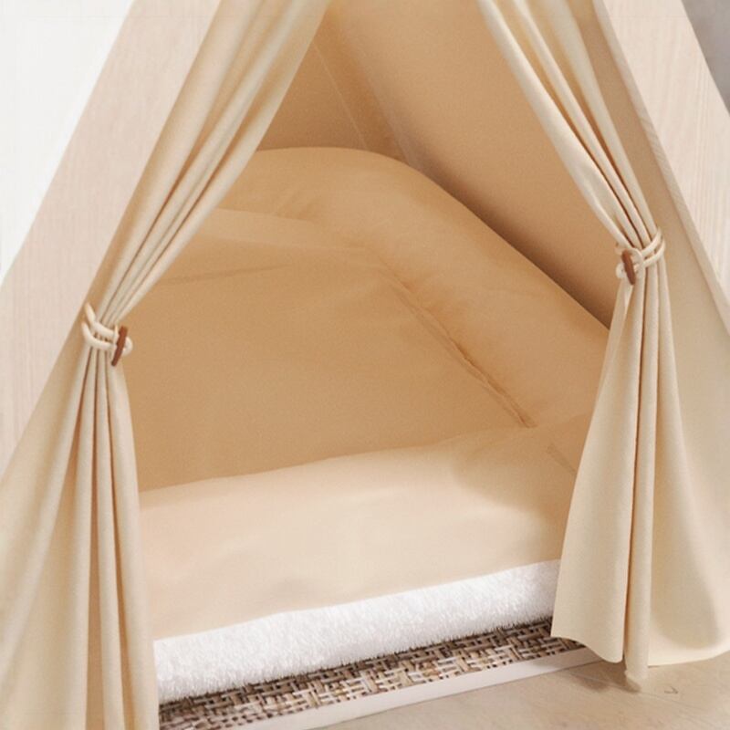 明るく爽やかなツイルコットン製のテントは、ご自宅にモダンでスタイリッシュな印象を与えます。厳選された高品質の松材を使用し、丁寧に研磨することで滑らかでバリのない仕上がりを実現。耐久性にも優れています。広々とした快適な室内は、成猫2匹を快適にお過ごしいただけます。半密閉型のデザインは優れた遮光性と安心感を提供し、愛猫に静かで快適な休息の場を提供します。完全に取り外し可能な設計で、毎日の分解と清掃も簡単です。厚さ10cmの柔らかなスリーピングマットで、ぐっすりとお休みいただけます。