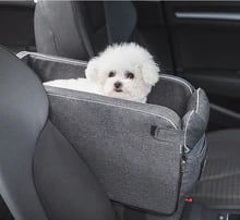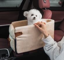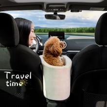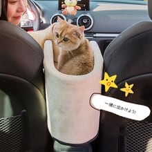 運転席と助手席の間のコンソールボックスに装着。運転席と助手席の間隔が25cm以上の車両に適合します。5kg未満の小型犬-猫に適したコンパクトなサイズです。丈夫なゴムバンドで滑らず安心安全です。