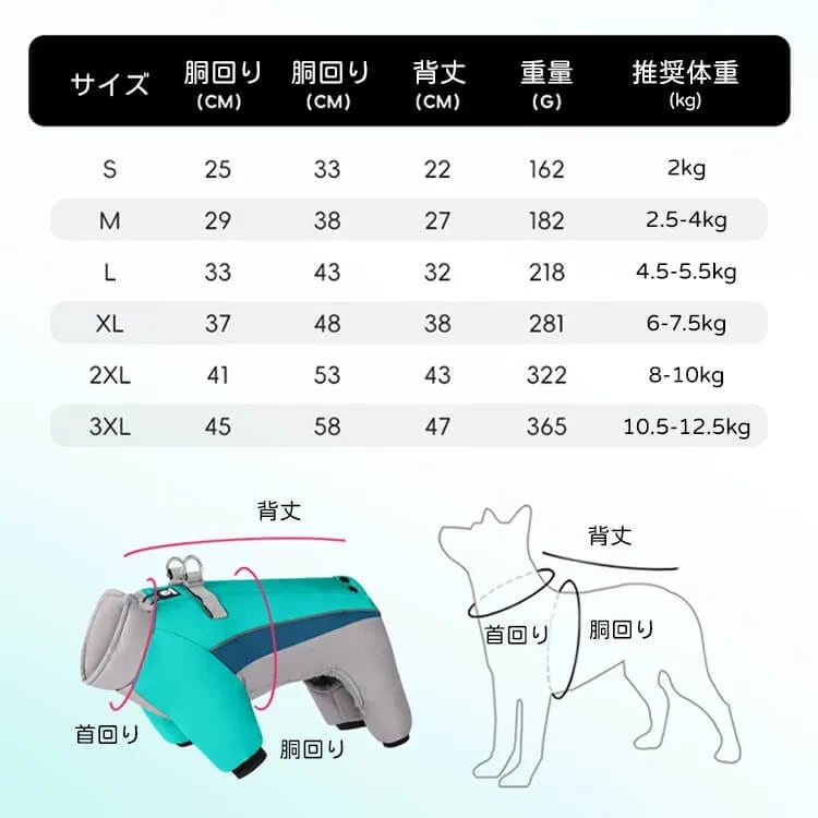北極ファーとふわふわ裏地が-30℃対応の極暖を実現。防水防風防雪で冬の悪天候にも対応。3秒着脱で着替えストレス軽減。お腹サイドの反射材は夜間100m先から視認可能で安心です。Vネックとゆとりある股下設計で最高の着心地と動きやすさを追求。写真映えするバイカラーデザインで、愛犬が冬のおしゃれの主役に。小型犬?中型犬に最適。