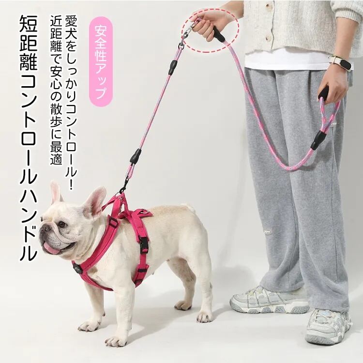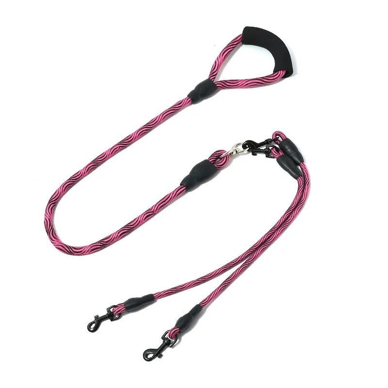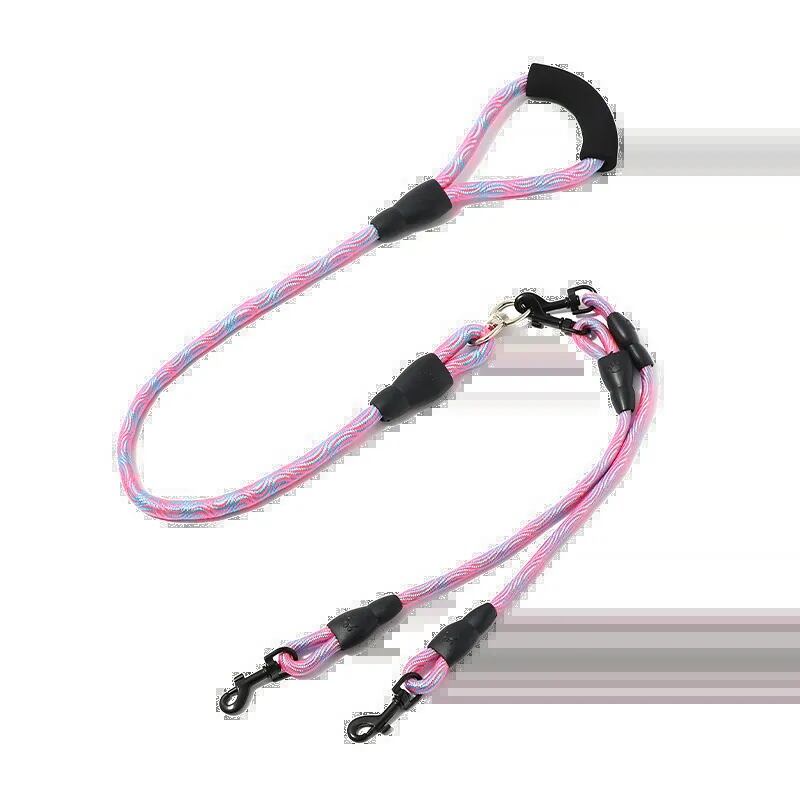 多頭飼いの家庭に欠かせないダブルリード!2匹同時のお散歩でもリードが絡まず快適。高耐久素材のナイロンロープと滑り止めハンドルで、安心安全なお散歩をサポートします。一頭引きにも二頭引きにも対応できる2way仕様で便利。毎日の散歩がもっと楽しくなるアイテムです!