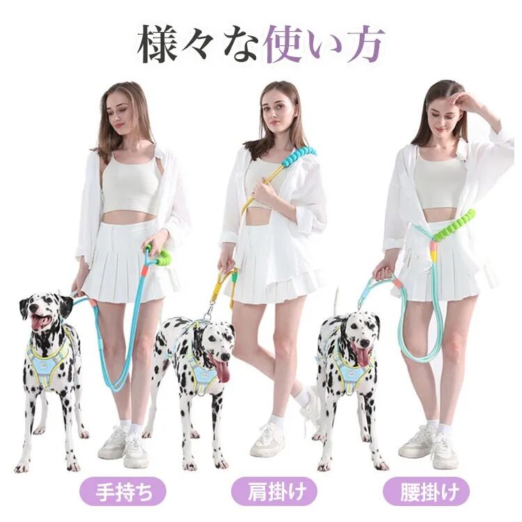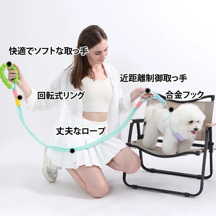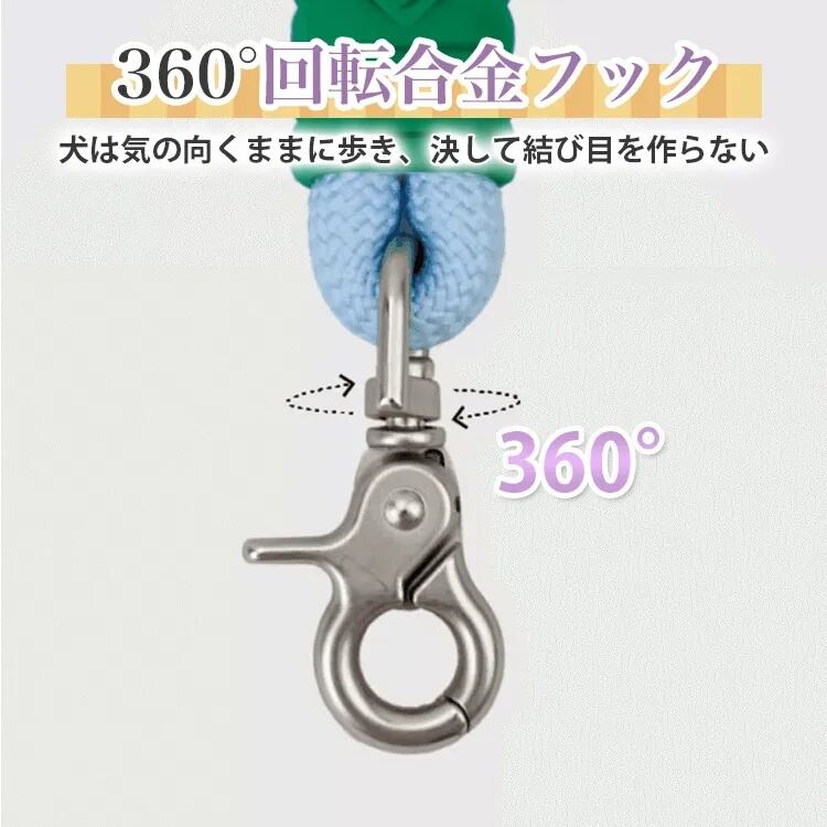 ・360°回転フックサイズ1.5m×1.2cmカラー全8色素材ゴム、ナイロン商品詳細触感が良くて丈夫なスポンジ取っ手は犬との散歩時間を楽しんで、ヒモでやけどをしないように手を守る。ロック可能な合金フックは頑丈で耐久性があり、耐摩耗性があり引っ張りに強い。3way使い方でハンズフリー、犬の散歩が楽になる。マルチ編みのロープは頑丈で耐摩耗性に優れる。