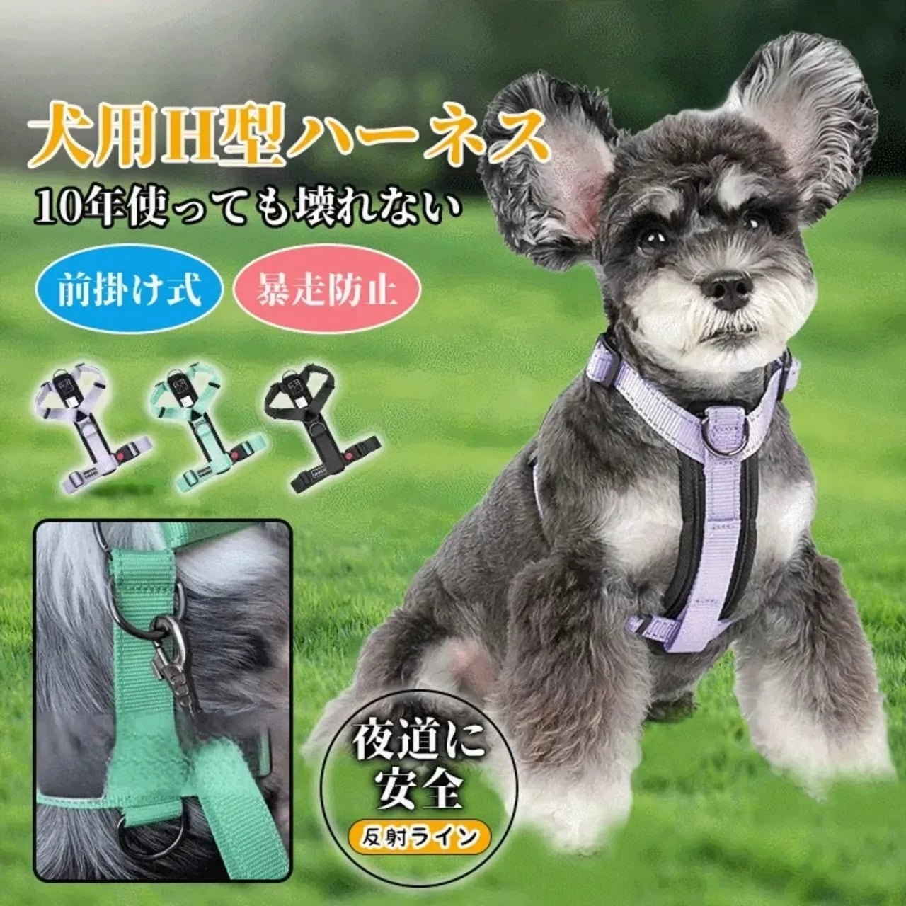 ・反射機能搭載サイズXS、S、M、Lカラーグリーン、ブラック、パープル素材ナイロン商品詳細精密した縫製で、強度があり、強い衝撃にも耐えられます。肌当たりも柔らかなふかふかの素材を使用しています。軽くて、クッション性と通気性がよく、喉への負担も軽減できます。水洗い可能なので、お手入れが簡単で、急な雨に濡れても大丈夫です。光反射糸入り、光を強く反射できますので、夜間や暗いところでも居場所が確認しやすく、お散歩がもっと安全です。