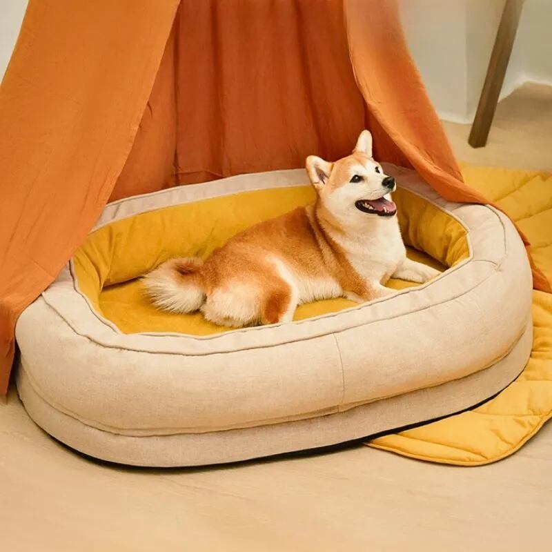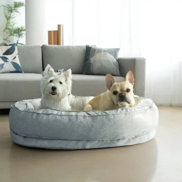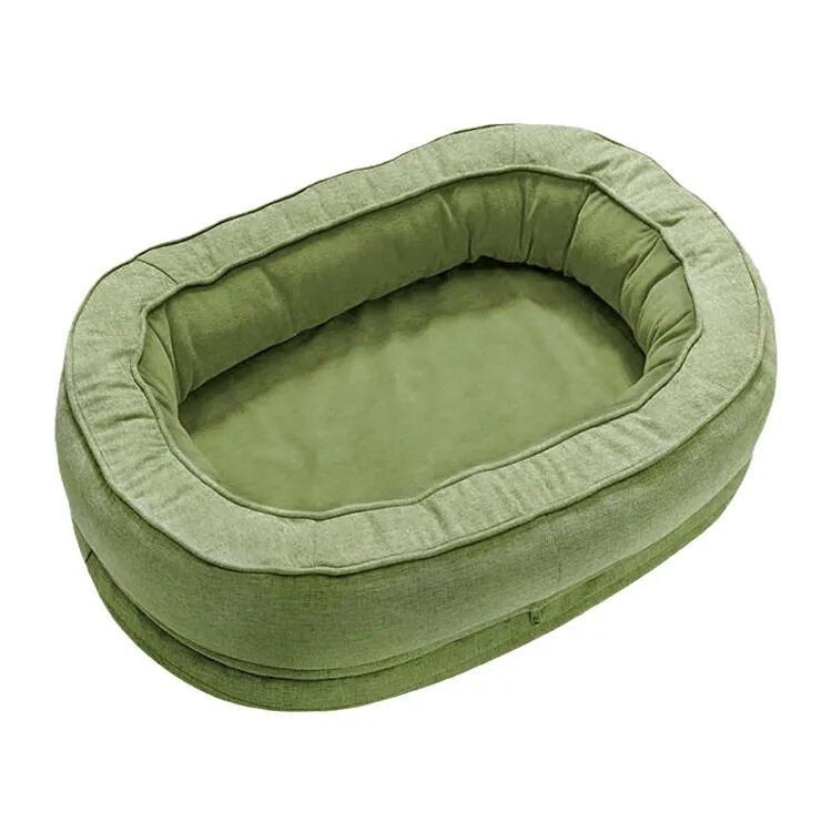 愛犬・愛猫に最高の眠りを贈る、のドーナツ型ペットベッド。ふっくら楕円形がペットを優しく包み、3D低反発ウレタンが背骨と関節をしっかりサポート。柔らかショートベルベットは通気性抜群で快適な肌触りを提供します。カバーは洗濯機で丸洗い可能、いつでも清潔に。犬猫兼用で年中活躍する一品です。