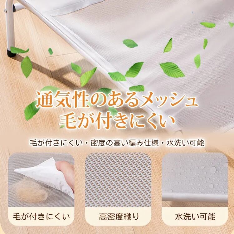 脚付き設計で湿気と汚れを防止?通気性抜群のメッシュ素材採用?丈夫で高耐荷重、小型犬から大型犬まで対応?洗える素材でお手入れ簡単?年中快適に使えるオールシーズン設計?サイズ