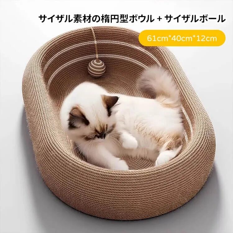 爪とぎ・遊び・寝る3役爪研ぎから家具を保護ゆったり深型で安眠丈夫で長持ちサイザル麻おもちゃボール付きスタイル