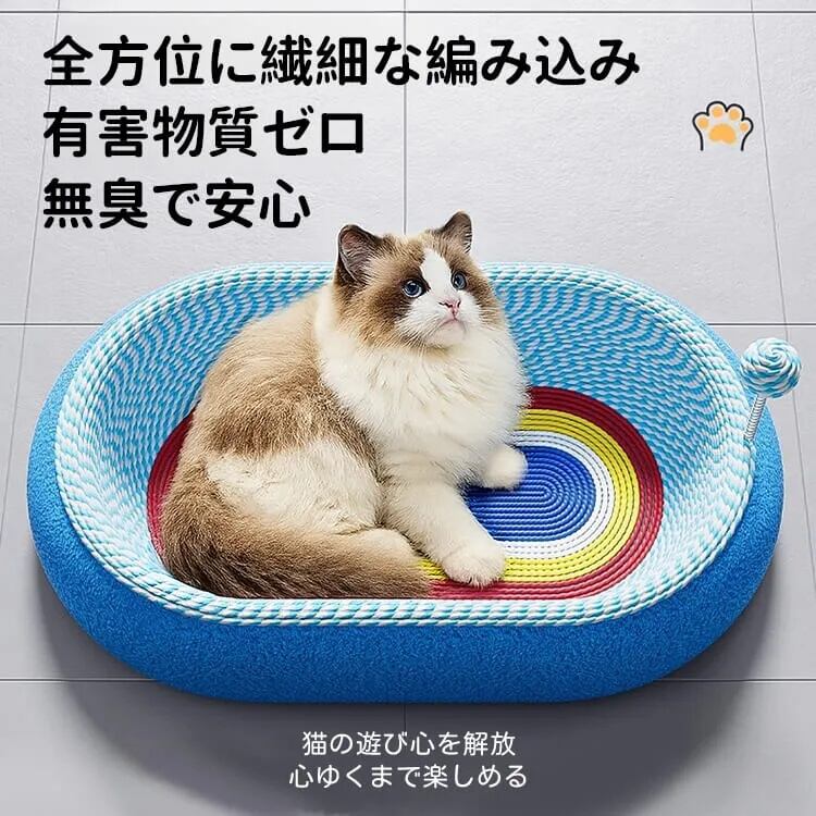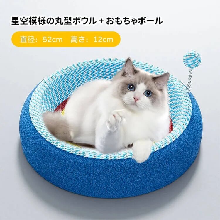 猫用爪とぎボウルベッド 星空模様 楕円形 サイザル麻 深型12cm ぐっすり眠れる 大型猫もゆったり遊べる広々スペース 家具保護 多機能ペットベッド 無臭安心素材 滑り止め加工 脊椎に優しい設計 おもちゃボール付き 耐久性抜群 | ZOZO SHOP