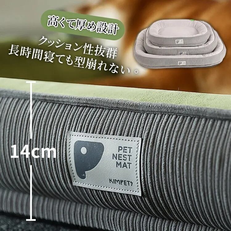 ・滑り止めサイズM L XL 2XL?カラーグレー、グリーン、カーキ適用対象猫犬兼用商品詳細ふわふわしっとり滑らかで優しい肌触りのペットベッド。寒い冬の夜も、ワンちゃん・猫ちゃんを優しく包んで至福の眠りに導いてくれます。シーズンごとにベッドを変える手間なく、愛猫・愛犬のリラックスタイムを年中快適に。中には中綿もたっぷり充填、型崩れしにくく、長期間お使いいただけます。ベッドの周りに立体的で、補強された縁取り、頭やあごが乗せやすくぐっすり眠ります。