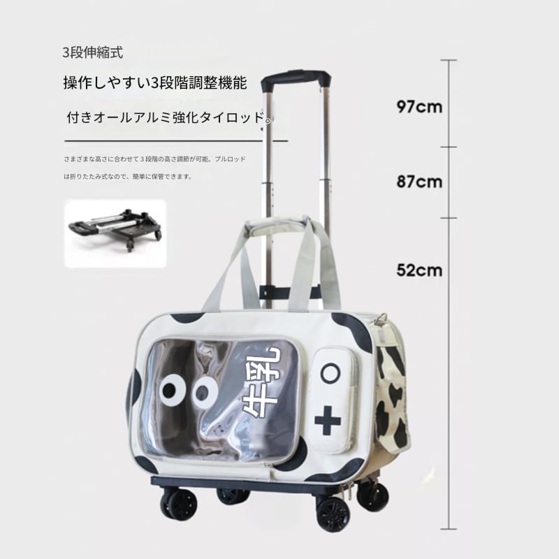現代の都市生活の状況に応じて、さまざまな方法(ハンドルを引く、手で運ぶ、または肩にかける)で使用できる多機能の小型ペット用スーツケースです。ペットとの旅行に最適で、シンプルでありながら洗練されたデザインなので、どんな場面でもスタイリッシュにお使いいただけます。