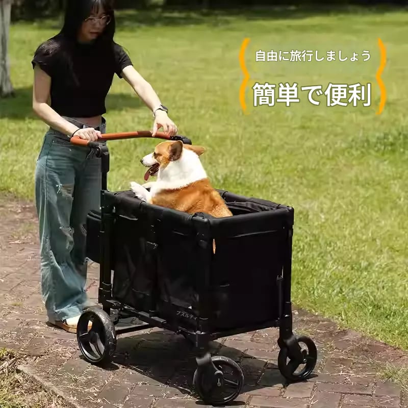 大切な愛犬を快適に運ぶために設計された「ペットカート大型犬 中型犬 4輪 折りたたみ 自立 コンパクト ドッグカート ペットキャリー」。お散歩や旅行のお供に最適で、折りたたみ式なので収納も便利。デザインはシンプルでありながら洗練されており、どんなシーンにもマッチするスタイリッシュな仕上がりです。