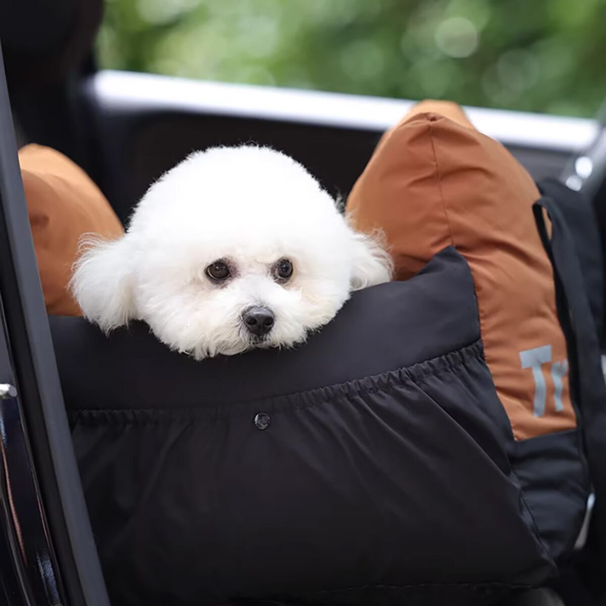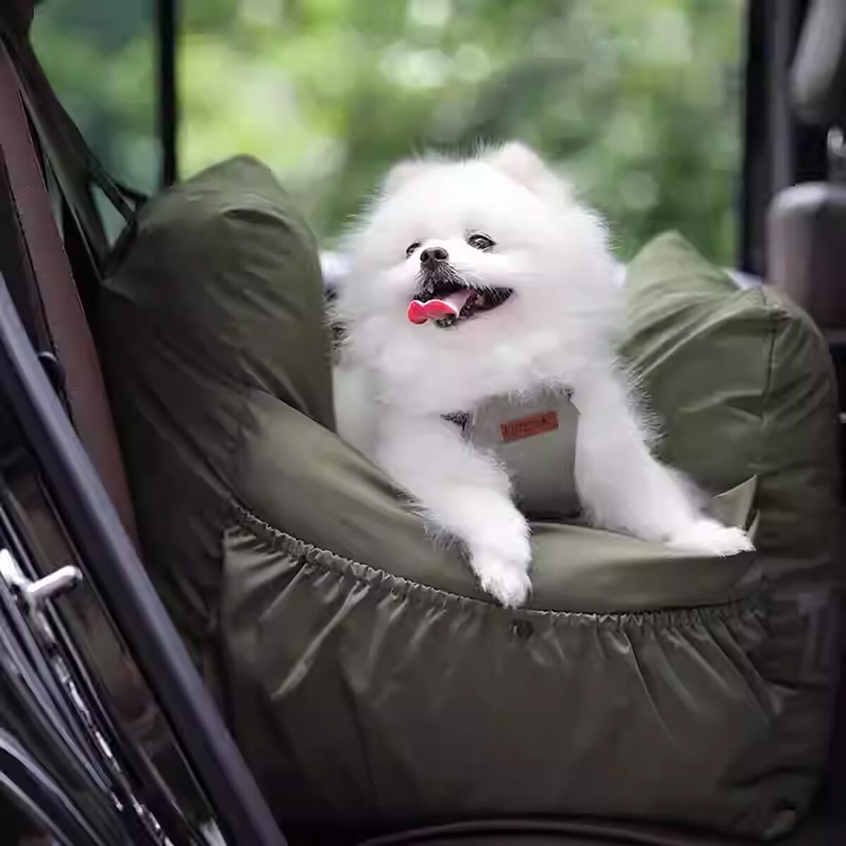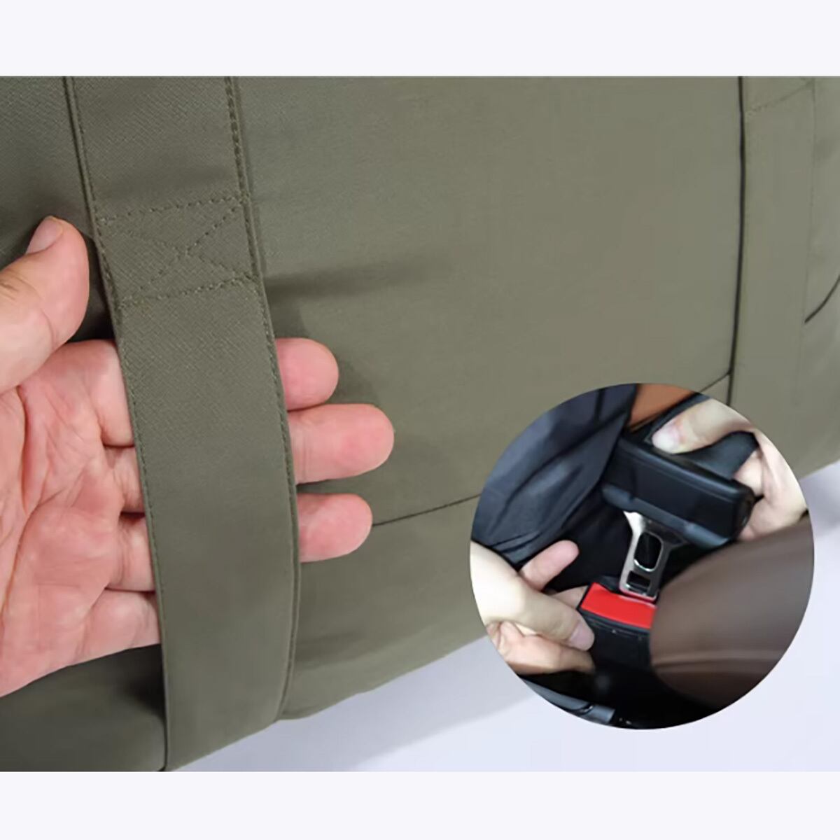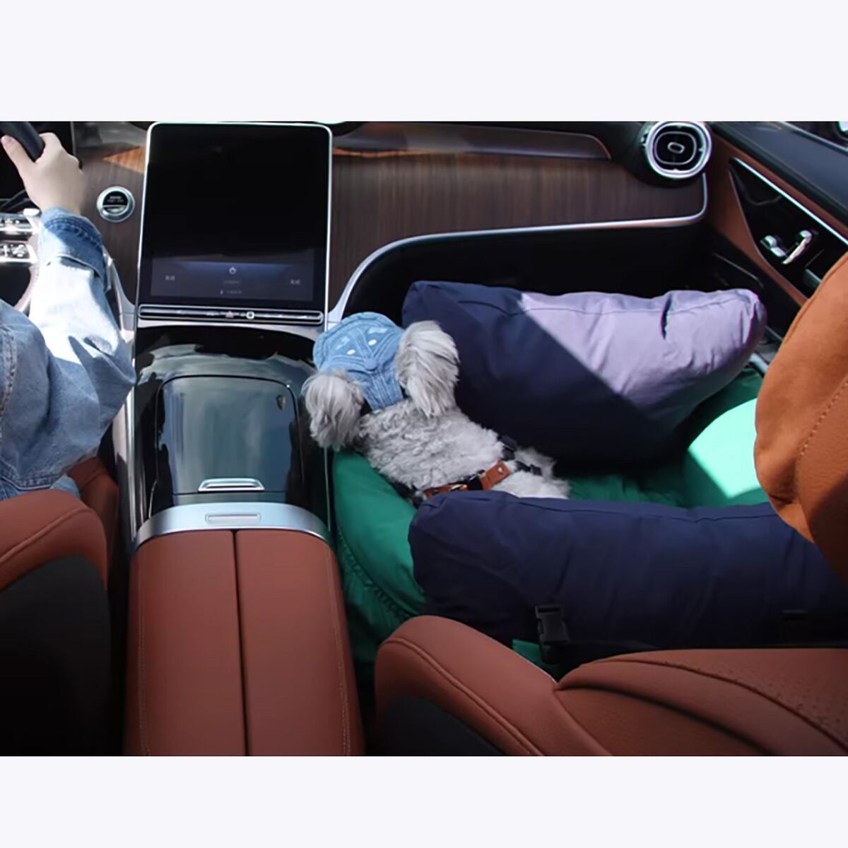 ・【確実な安全固定】車のシートベルトと2本の安全ロープでしっかり固定:ベッドをシートに置き、シートベルトを通し、さらにヘッドレストと背もたれに2本の調整可能なロープを掛け、三重に固定。急な揺れや衝突時も、ベッドがぐらつかず、愛犬をしっかり守ります。