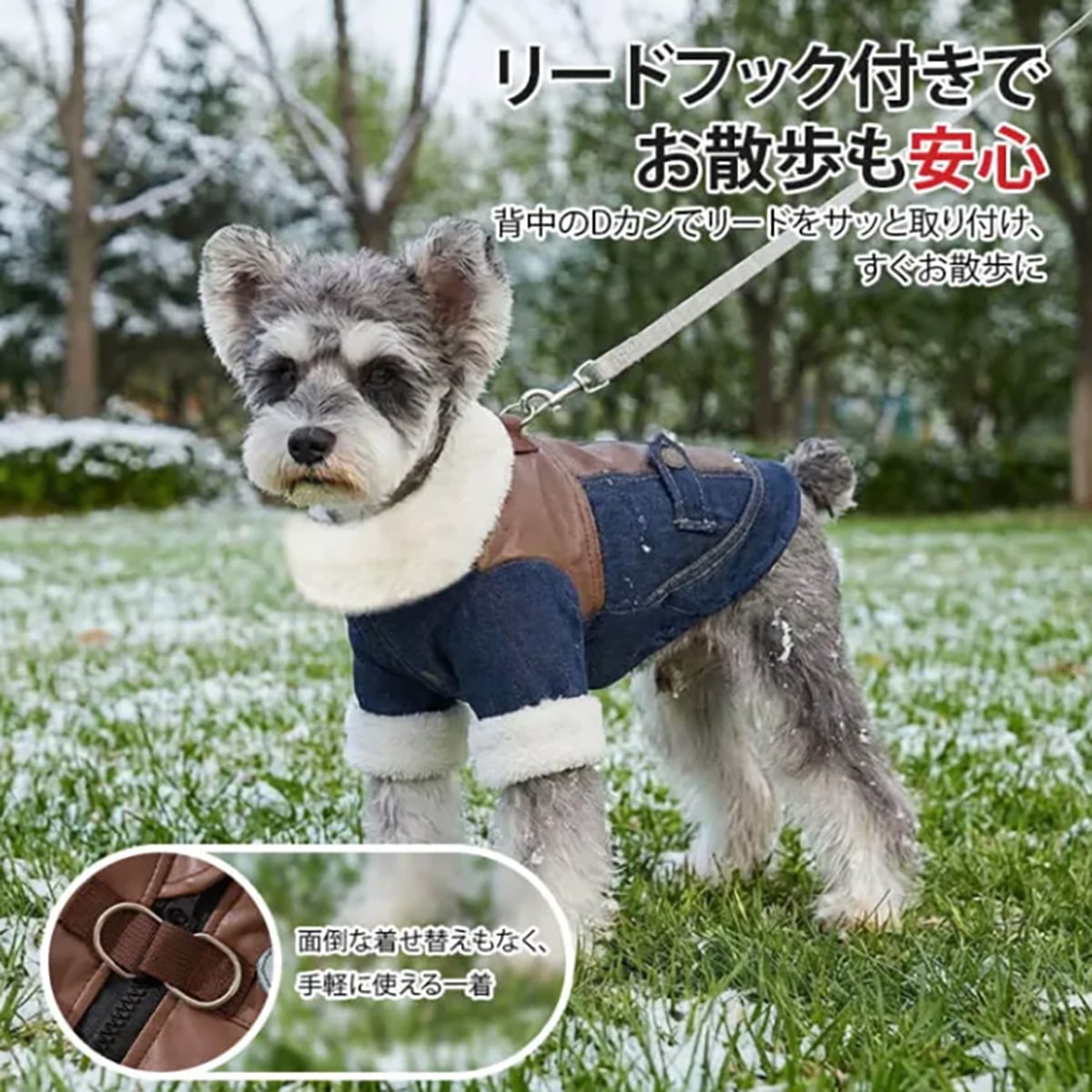 ・さらに、導電性繊維を織り込んだ裏地で秋冬の静電気の悩みを解消。背中のDカンにリードを直接取り付けられるため、ハーネス不要でお散歩準備も簡単です。お手入れ簡単な耐久素材で、長くご愛用いただけます。