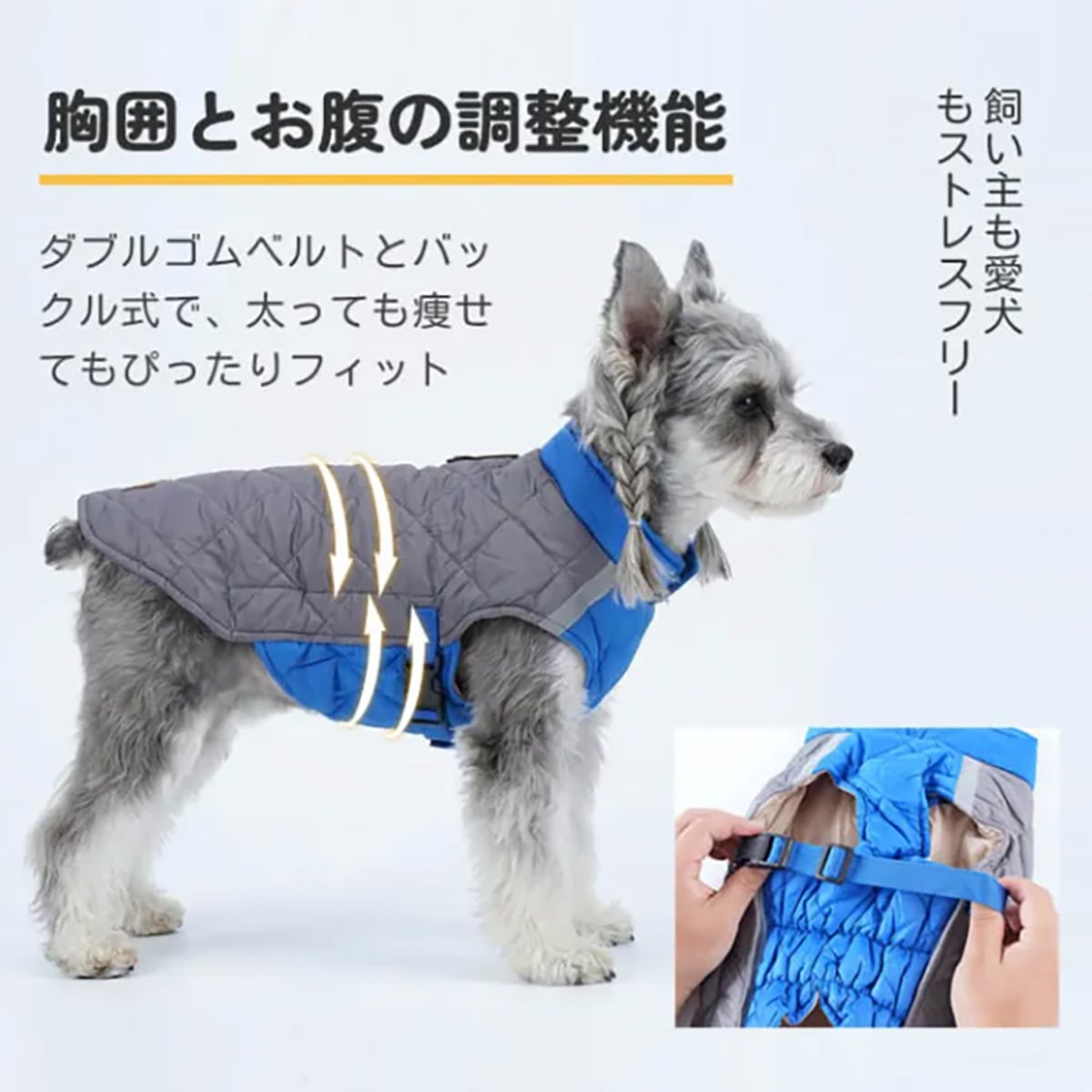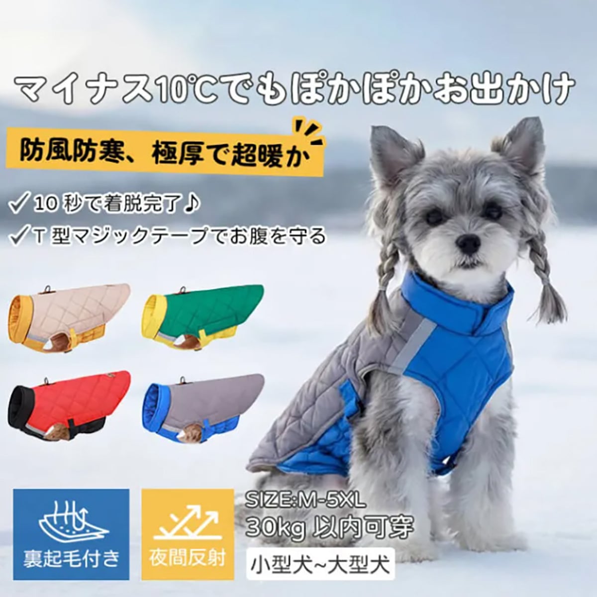 新型保温ウェアは、触れた瞬間から熱を蓄える「魔法瓶効果」で、愛犬を厳寒から守ります。軽量なキルティング加工とソフトな裏起毛で、長時間の着用でもストレスフリー。リードフック一体型で散歩準備もワンタッチ。夜間安心の反射材、オスメス対応Vカット設計など、安全性·快適性·利便性が全て揃った高機能ドッグウェアです。