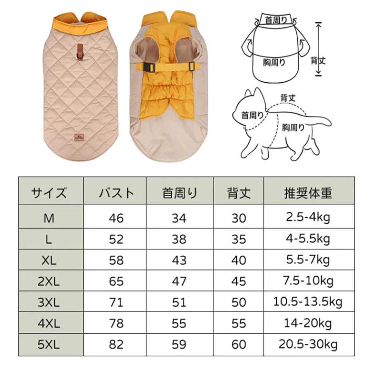 冬用犬服 ドッグウェア 冬用 防寒 保温ジャケット 厳寒対策 撥水/防水 裏起毛 キルティングコート ハーネス一体型 リードフック付き Vカット設計 反射材 M-5XL 小型犬 中型犬 大型犬