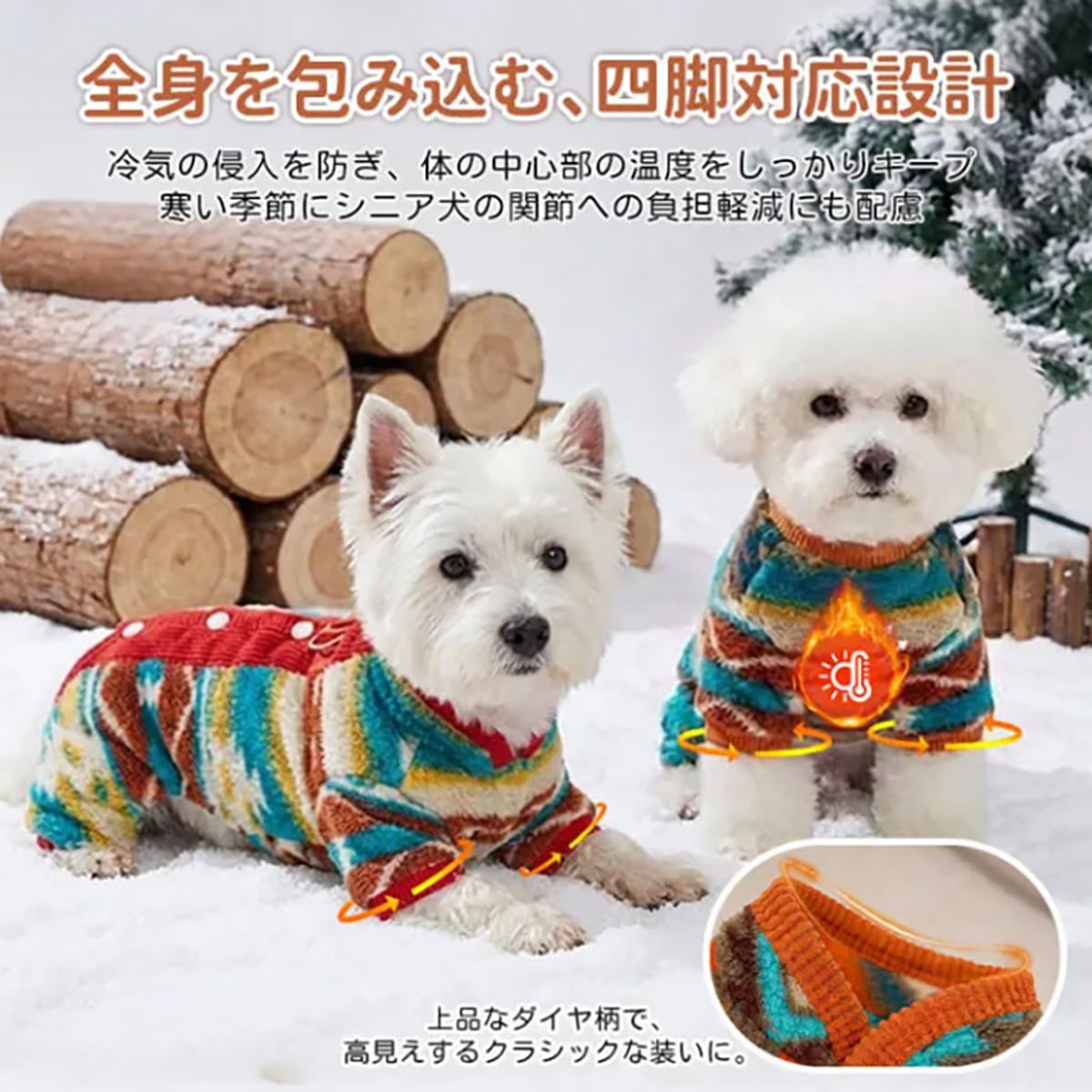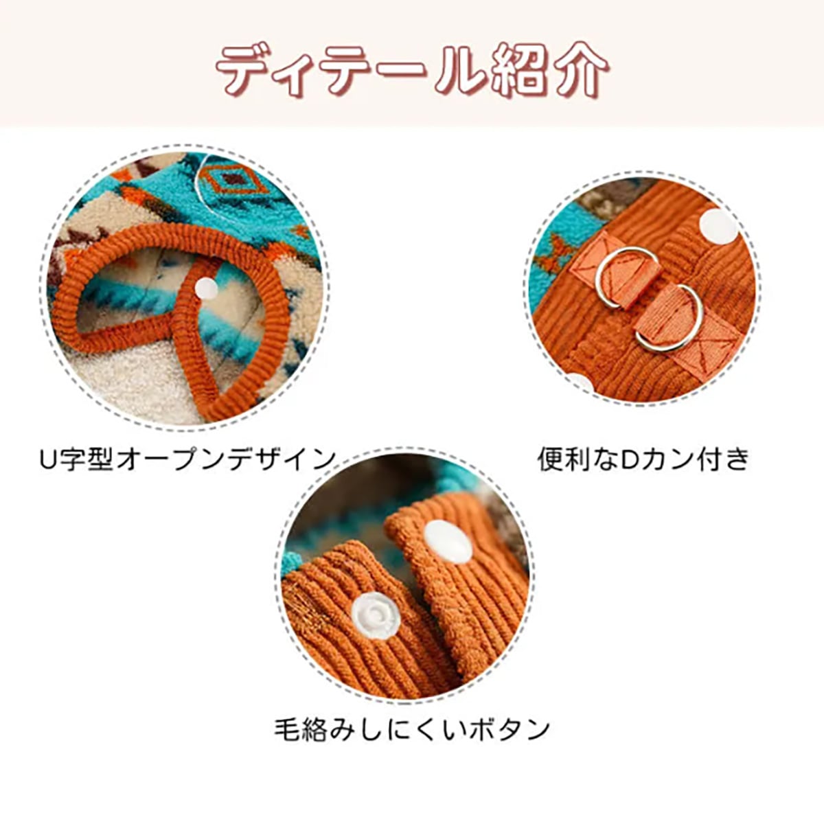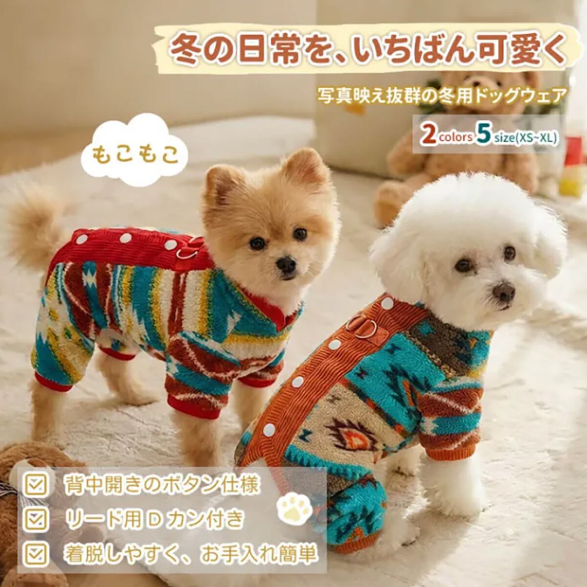 背中開き裏フリース犬服 ドッグウェア 冬用 防寒保温 ラムファー コーデュロイ 厚手 着たままトイレOK 着脱簡単 リードDカン付き 四脚対応 首元防寒 洗濯機OK 多頭飼い 写真映え シニア犬にも