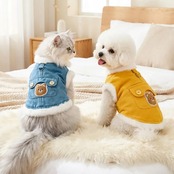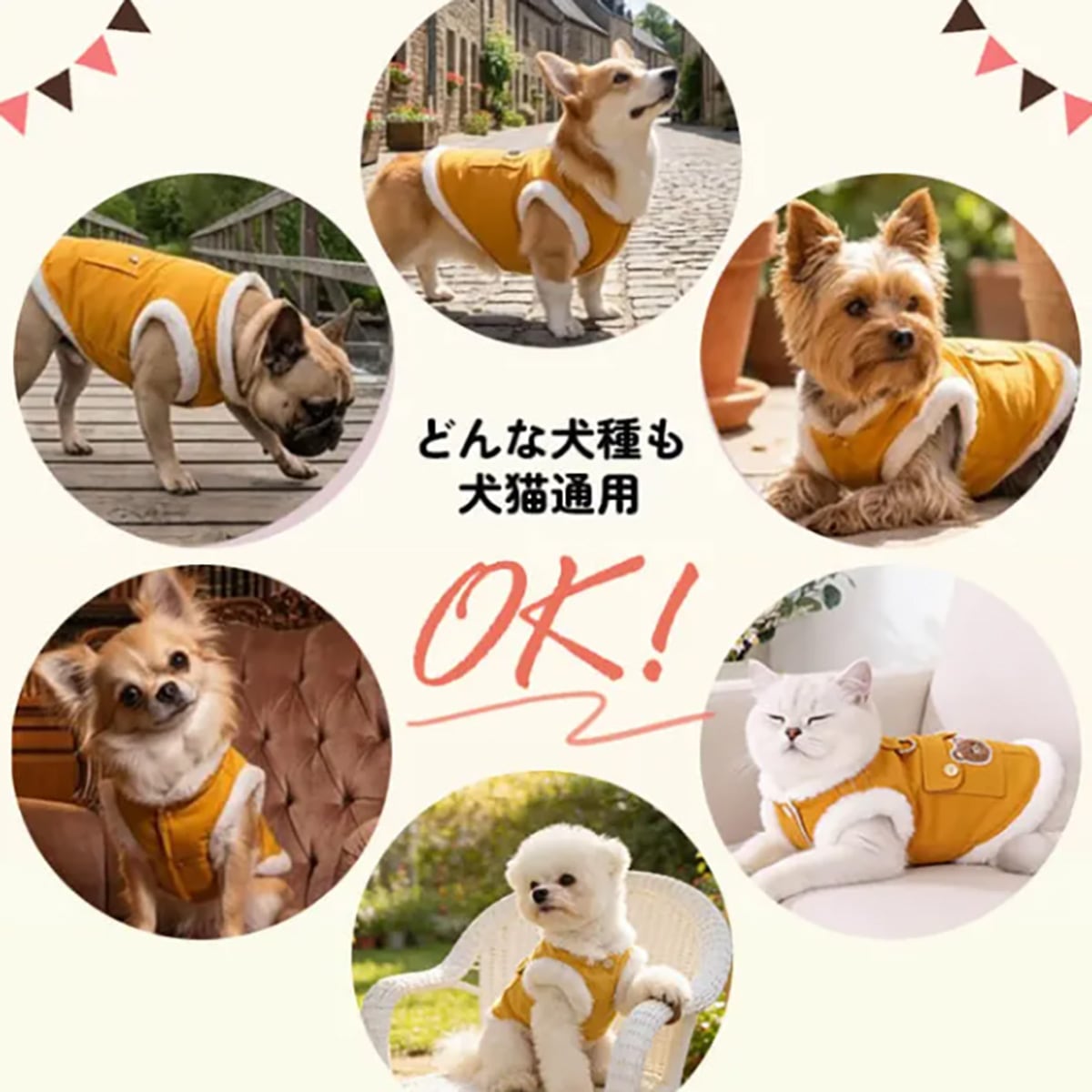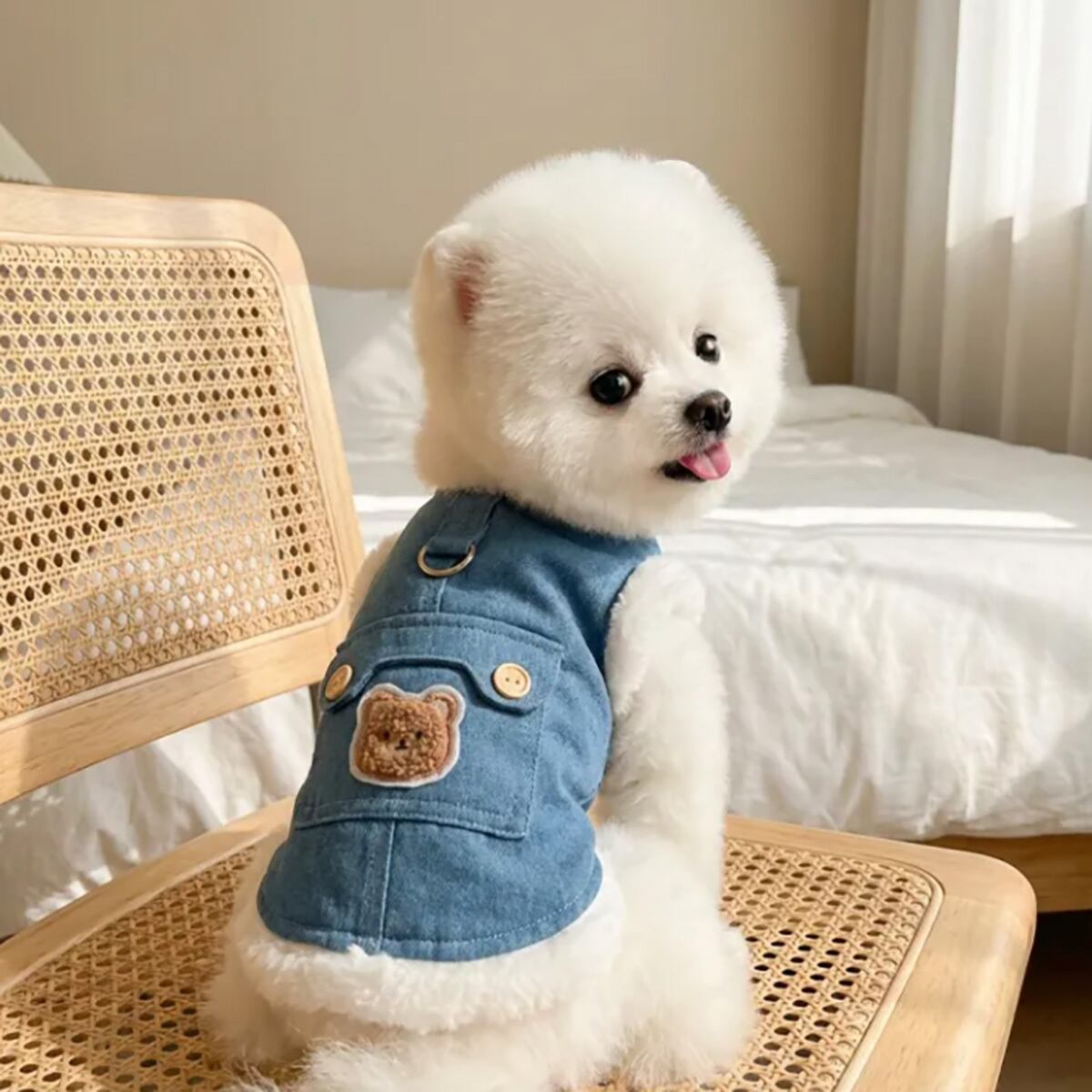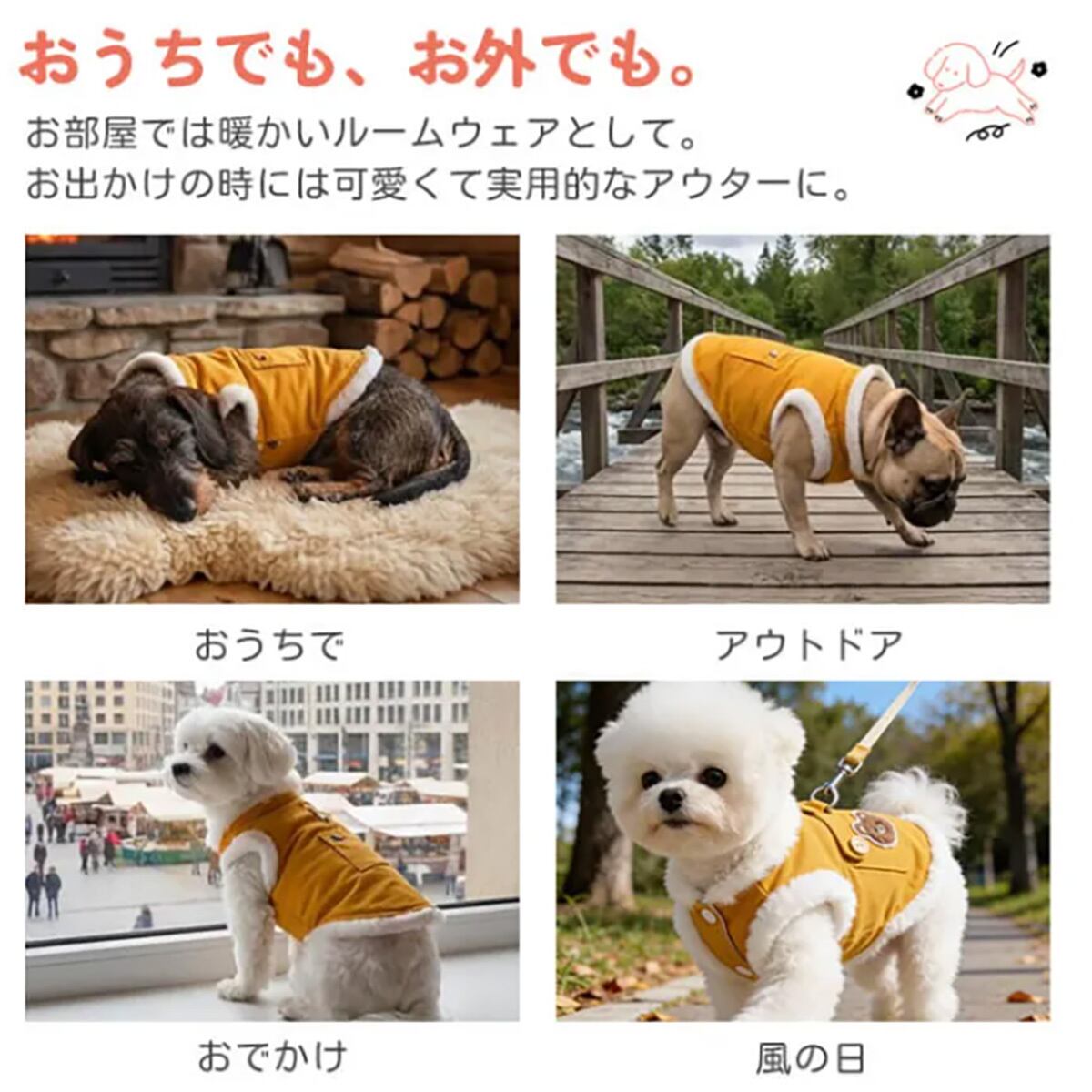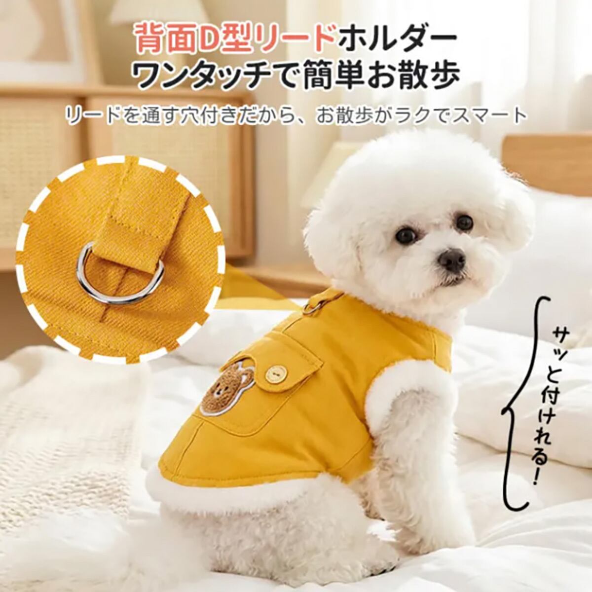 犬服 リード一体型デニムベスト 防寒着 マイナス5℃対応 360°保温 ふわふわファー裏地 高密度フリース スナップボタン 着脱簡単 動きやすい 暖かくてムレない 耐久性 立体ベアポケット おしゃれ ドッグウェア 小型犬 中型犬 お散歩 マストアイテム 寒さ対策