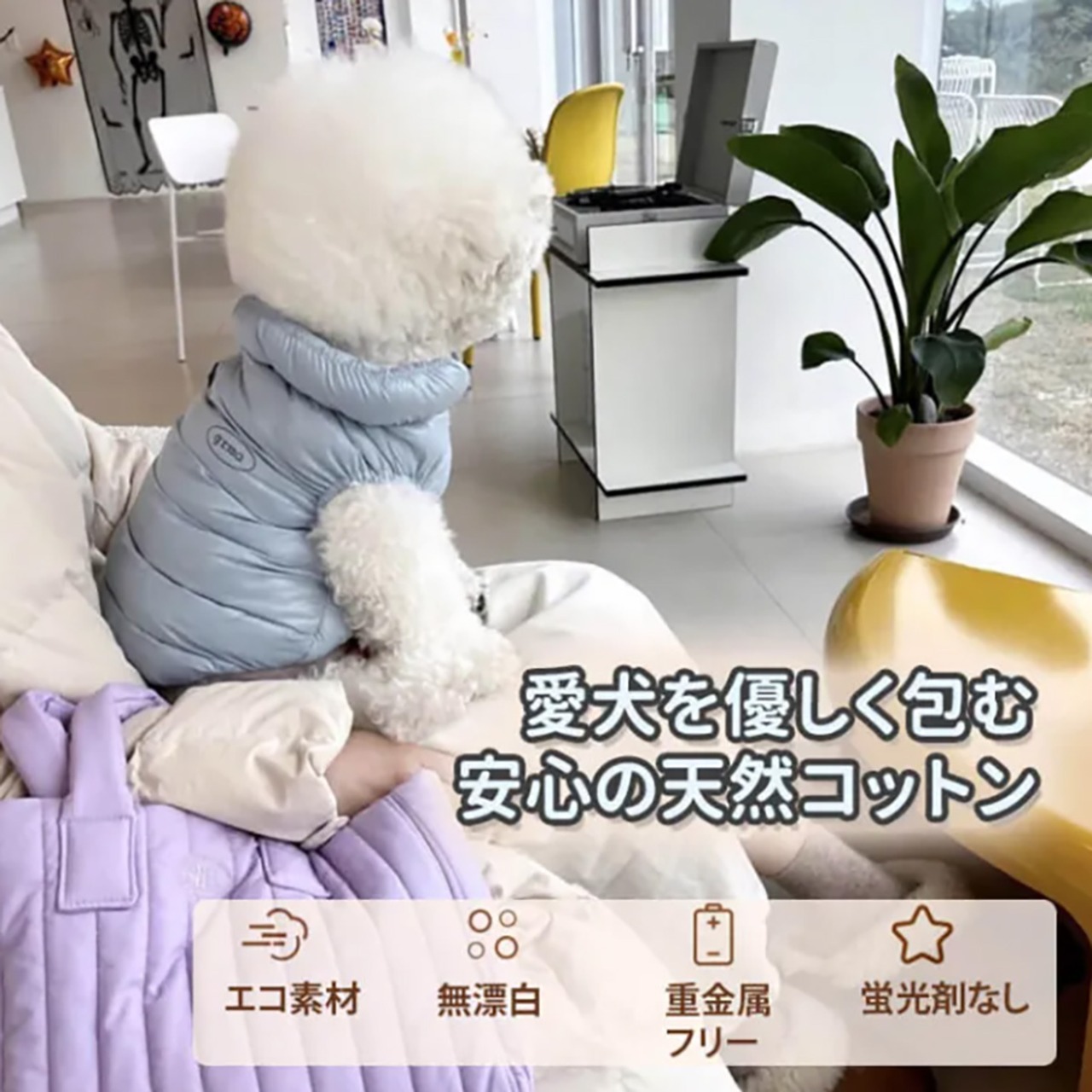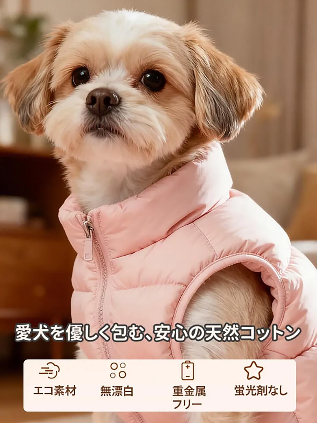 小型犬用ダウン風あったかベスト 秋冬新作 360°ストレッチ ストレスフリー 瞬間+5.5℃保温 超軽量 防風撥水 締め付け感ゼロ 雲ごこちフィット シルクコットン使用 犬服 寒さ対策