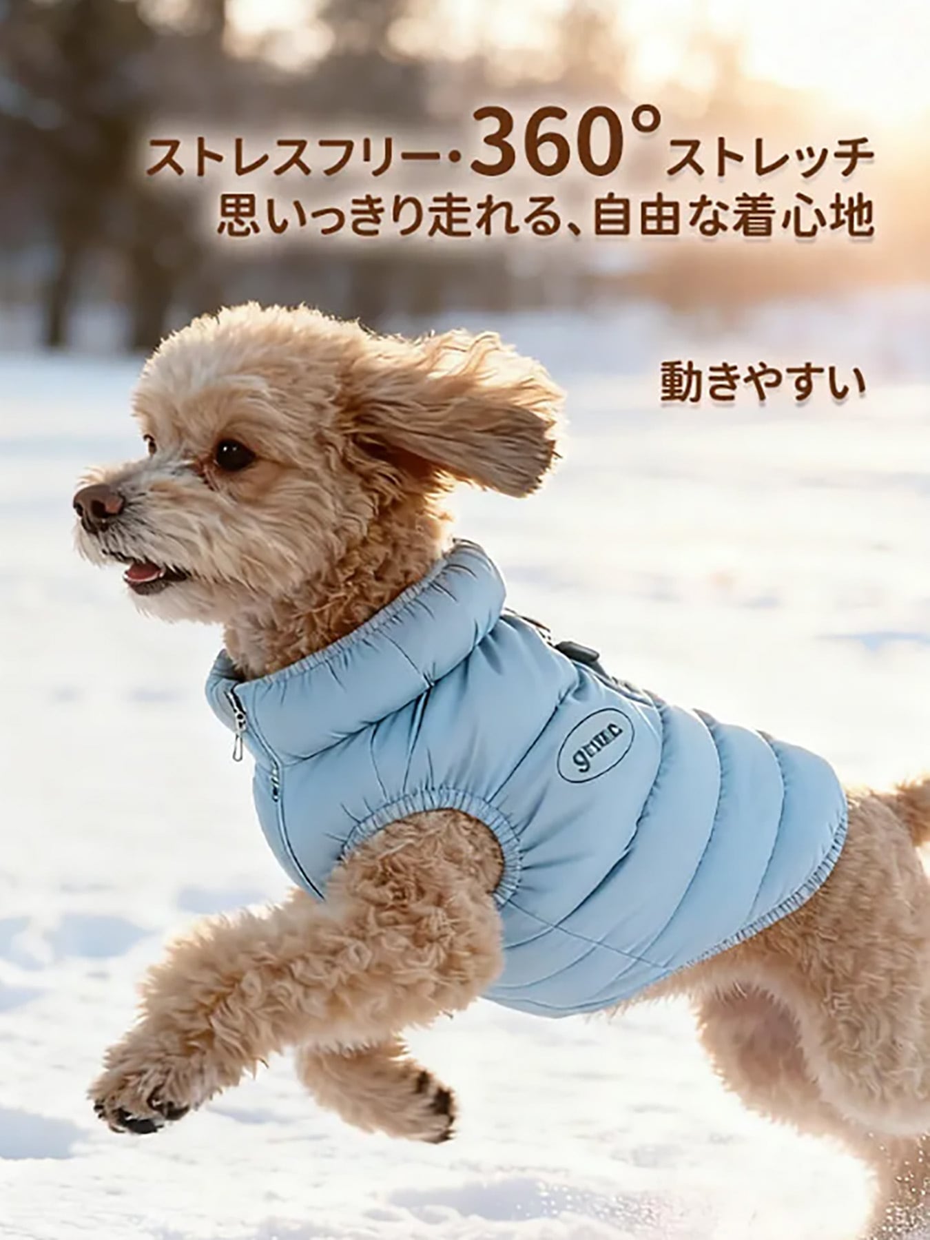 秋冬新作ダウン風ベストは、愛犬の動きを邪魔しない360°ストレッチと超軽量ファブリックを採用。愛犬自身の熱で暖かさを溜め込む高機能中綿と保温テクノロジーで、瞬間+5.5℃の暖かさを実現します。