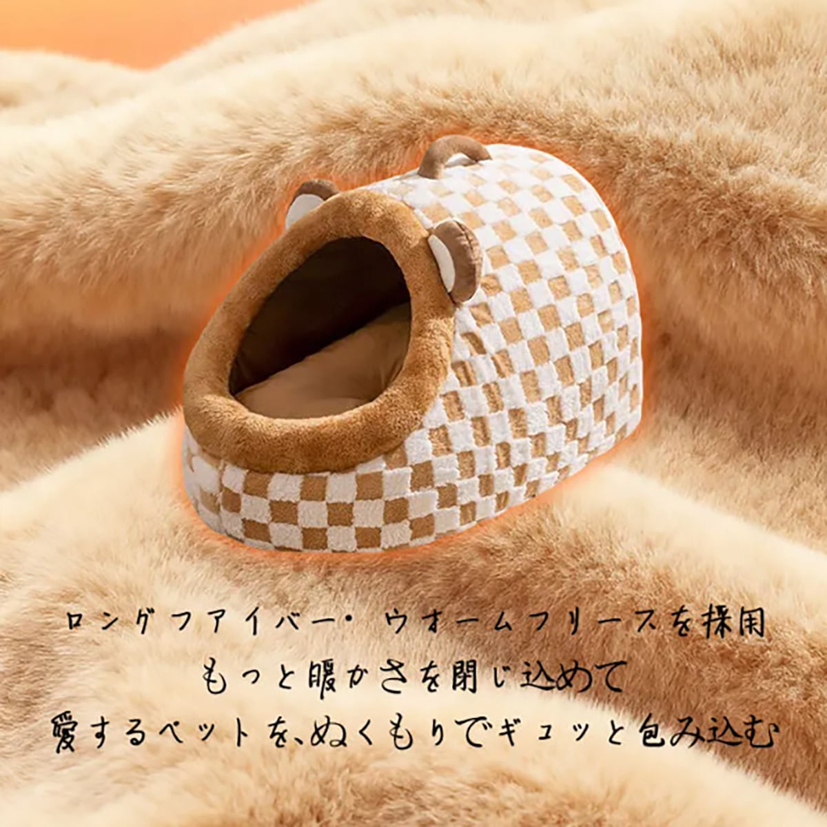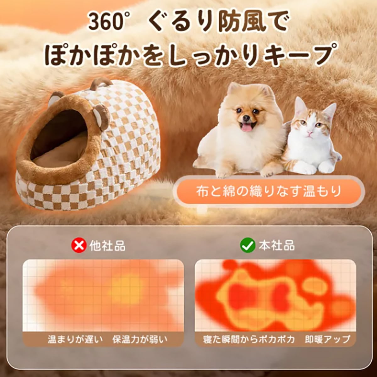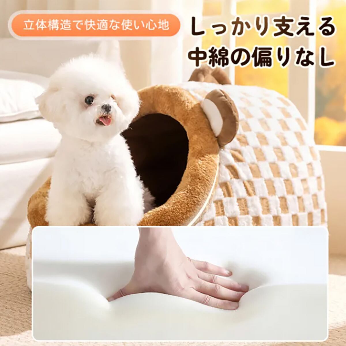 マカロンペットベッド ドーム型 4Dクラウドフリース構造 サーマル素材採用 蓄熱保温 ポカポカ 厚手ふっくら高弾力性 型崩れなし 両面クッション仕様 リネン風生地で通気爽快 オールシーズン対応 持ち手付き 小型犬 中型犬 猫 多頭飼い