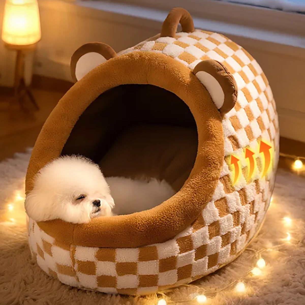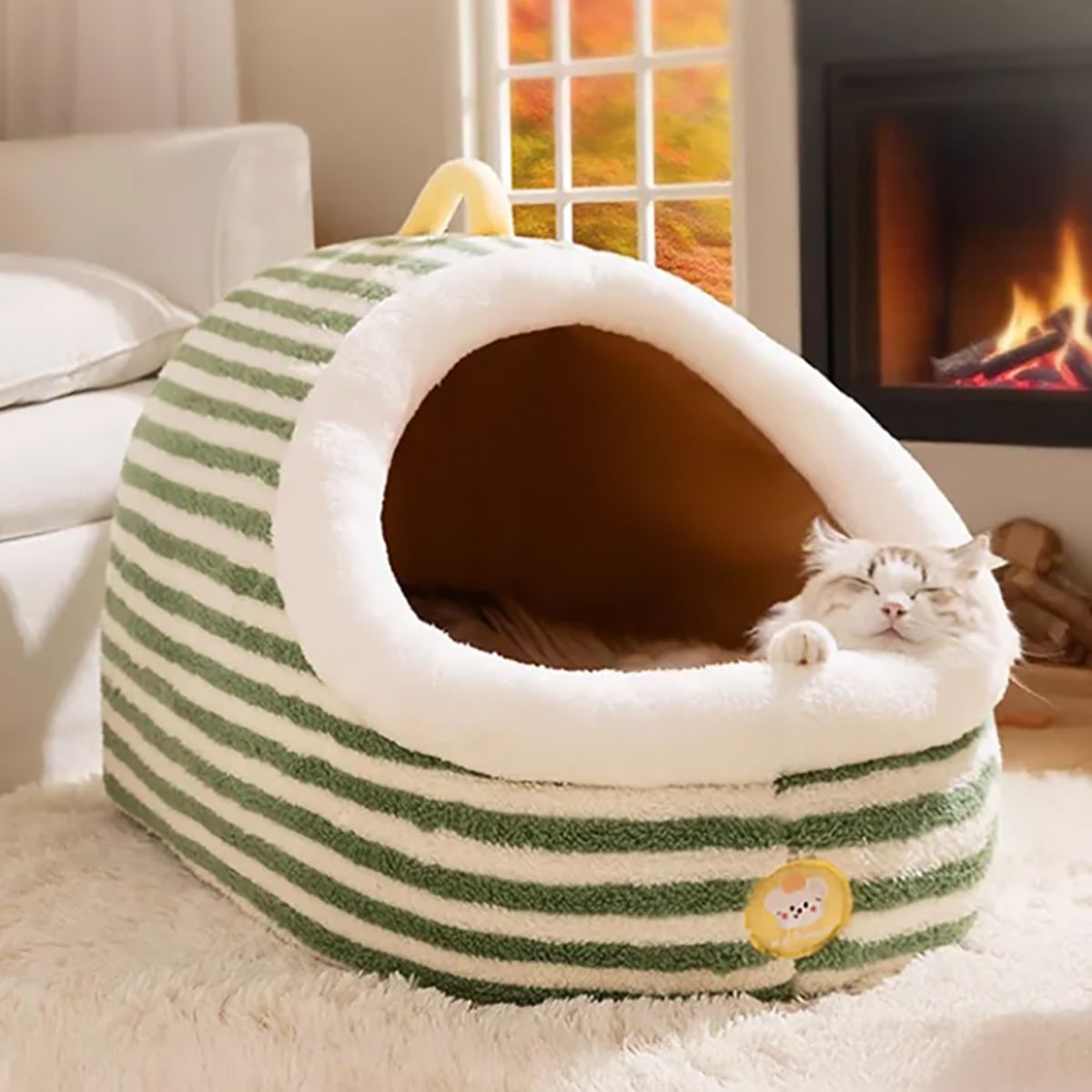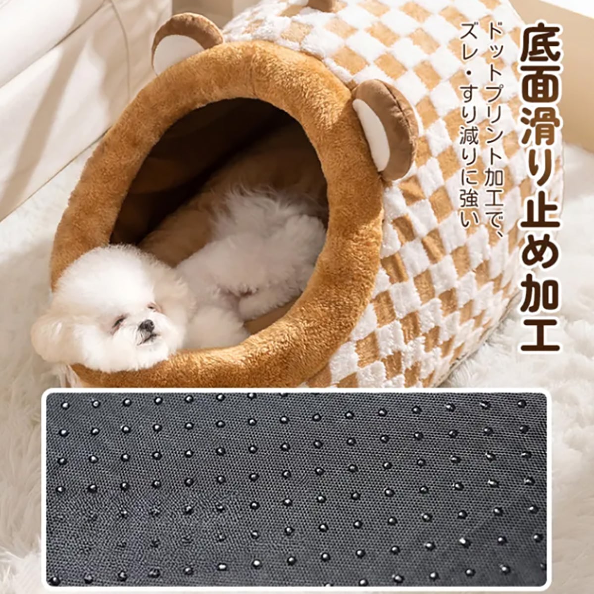 マカロンペットベッド ドーム型 4Dクラウドフリース構造 サーマル素材採用 蓄熱保温 ポカポカ 厚手ふっくら高弾力性 型崩れなし 両面クッション仕様 リネン風生地で通気爽快 オールシーズン対応 持ち手付き 小型犬 中型犬 猫 多頭飼い