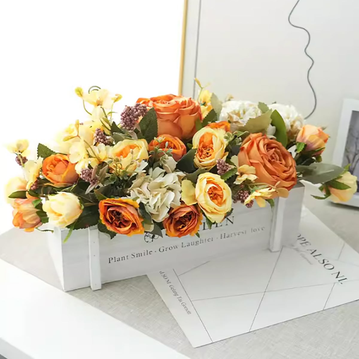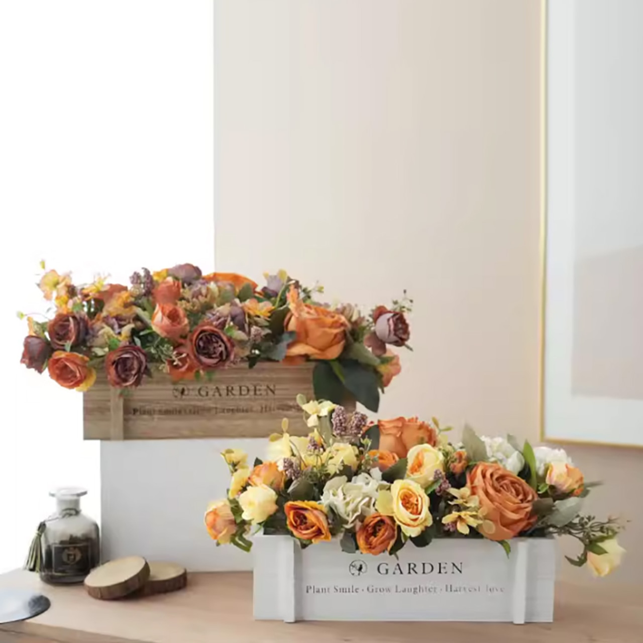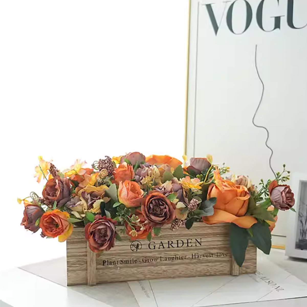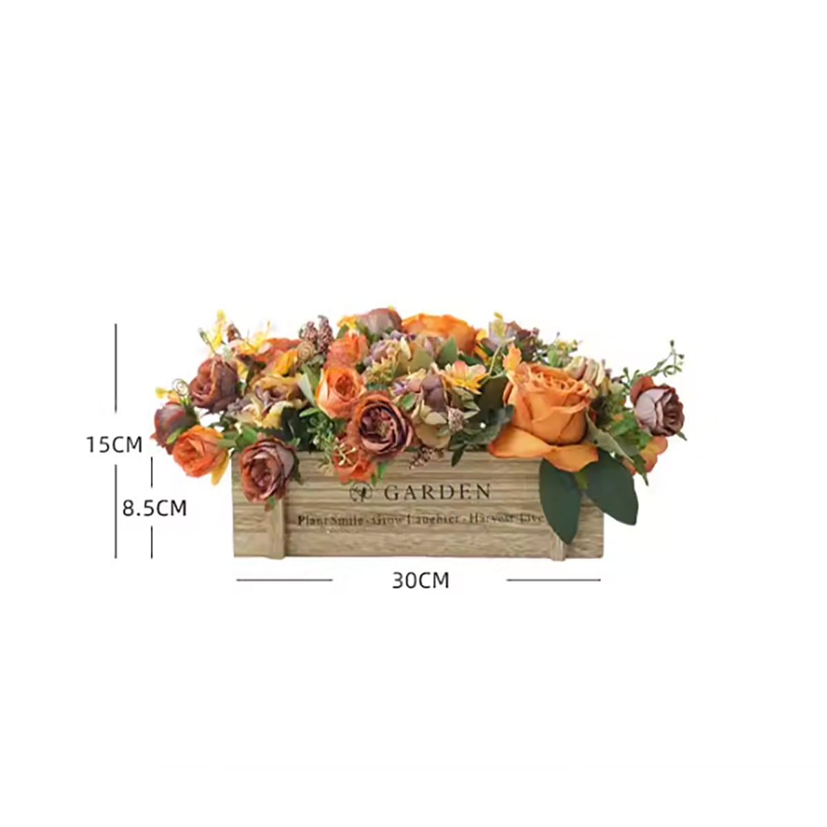上質な見た目の庭園風木箱 造花アレンジ(テーブルデコレーション)