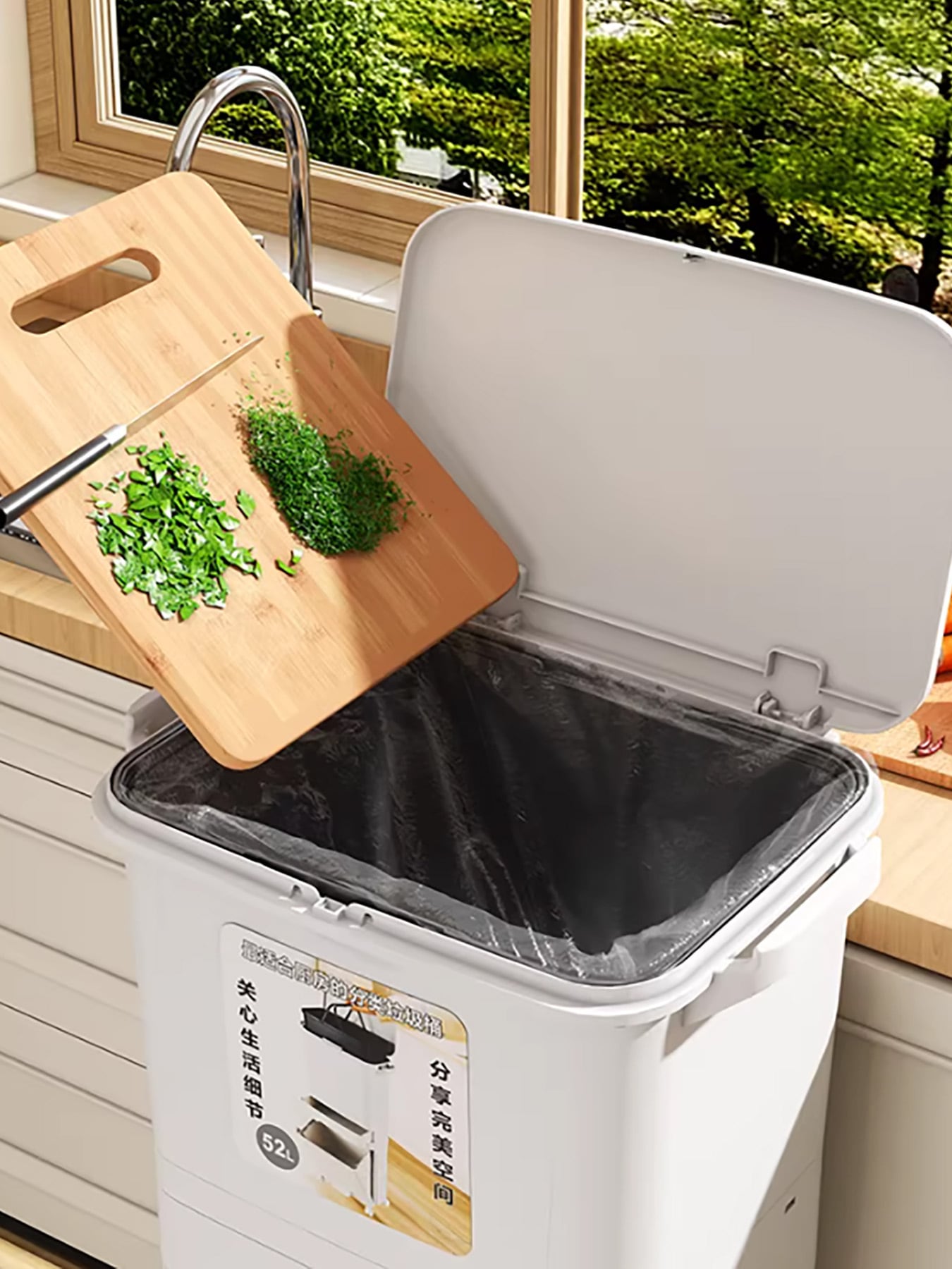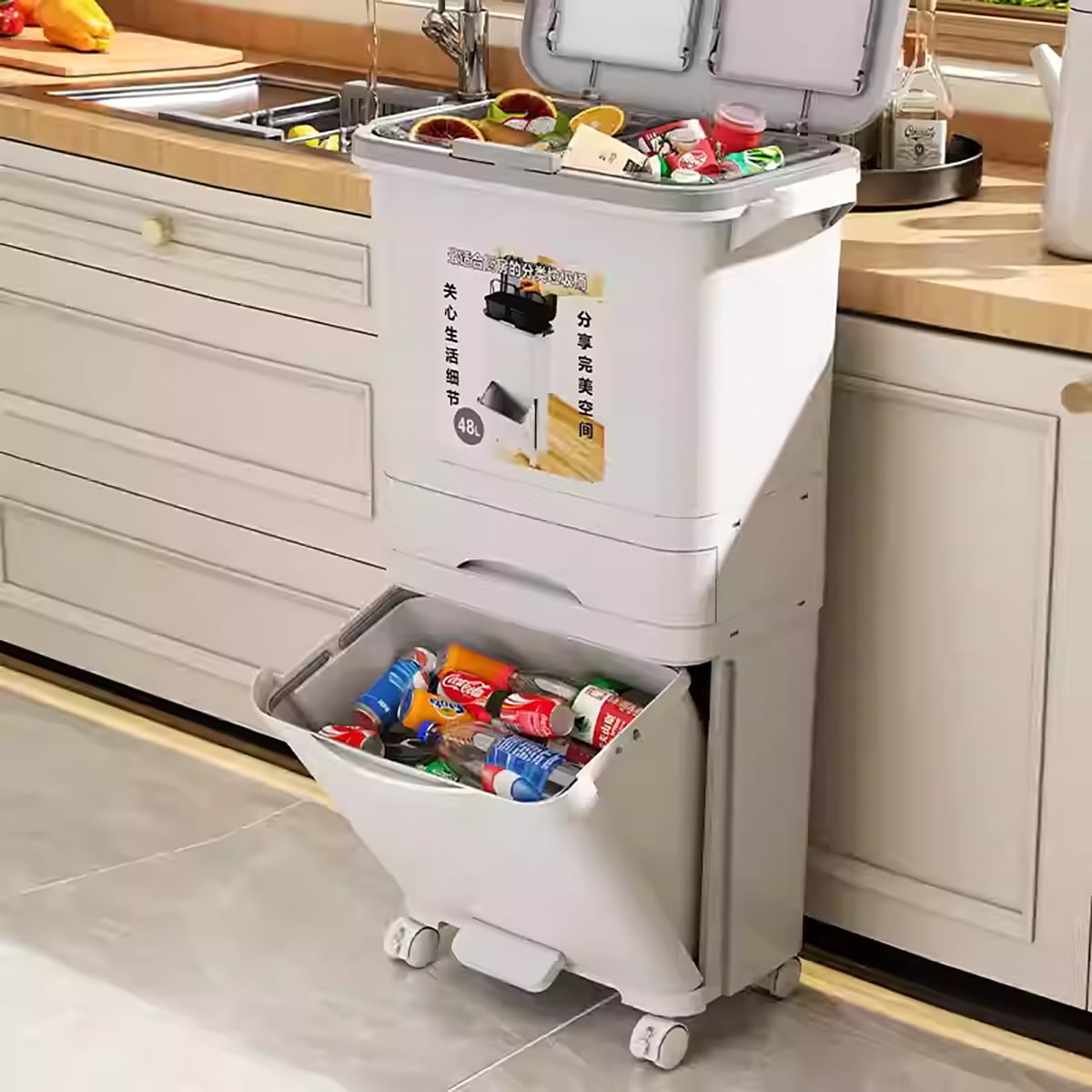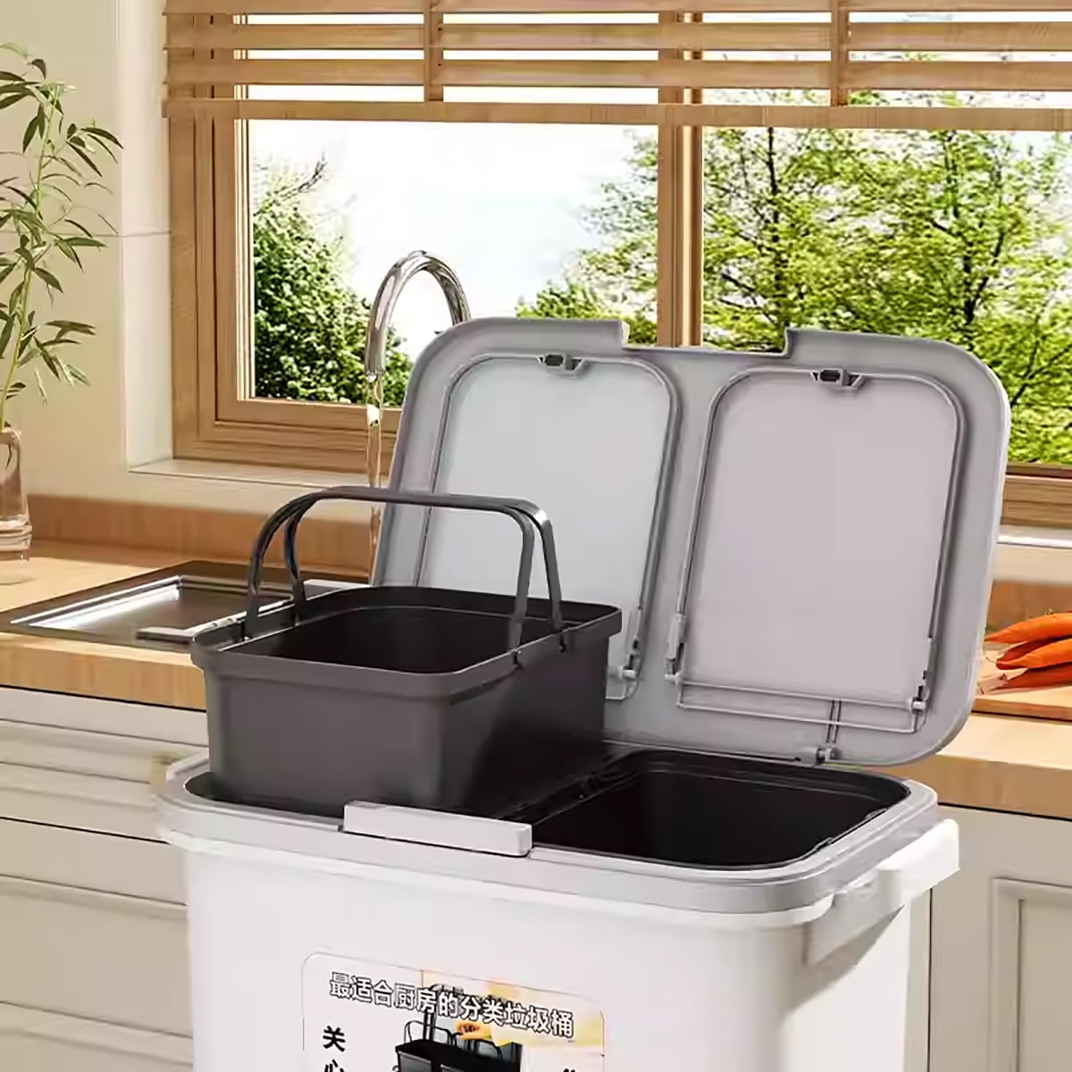 家庭用 大容量 踏み込み式 ゴミ箱 - 生ゴミ 分別 二層 仕切り 付き(3段構造)