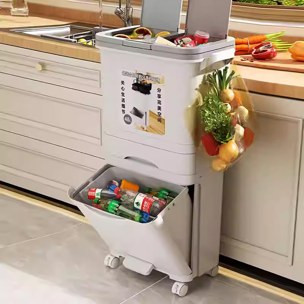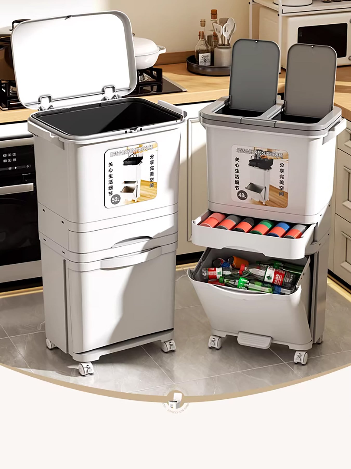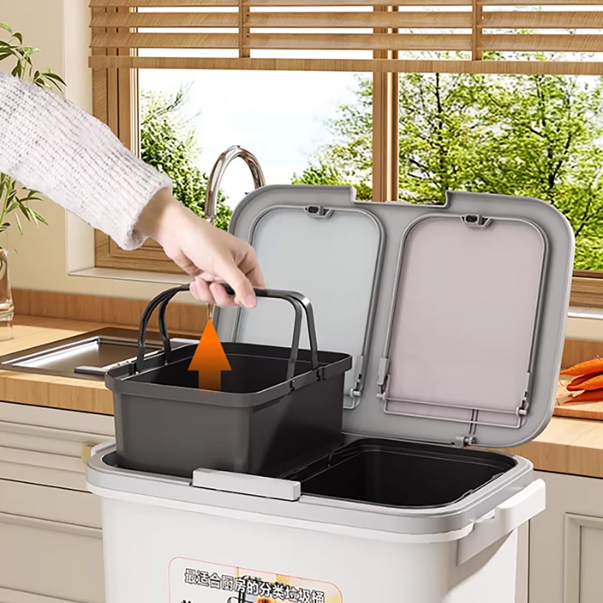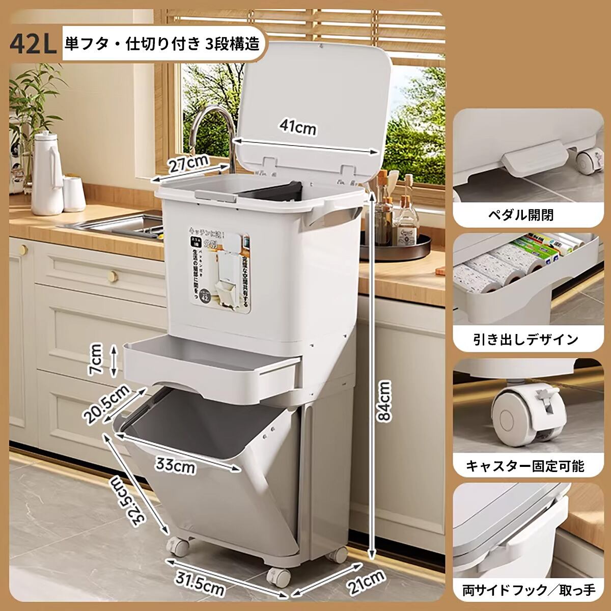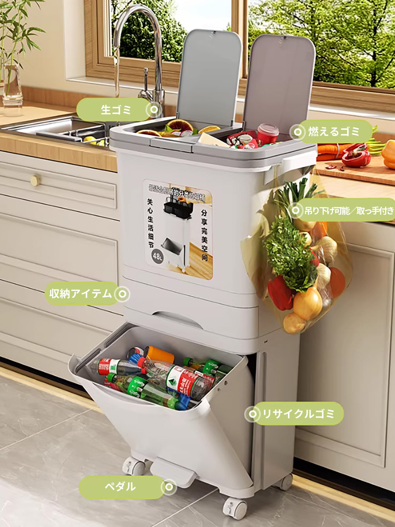 ・【生ゴミと普通ゴミをきれいに分離】独立した二層構造と密閉できる蓋:臭いの元となる生ゴミと、その他のゴミを完全に分離収納。蓋が臭いを閉じ込め、キッチンやリビングの空気をいつも清潔に保ちます。