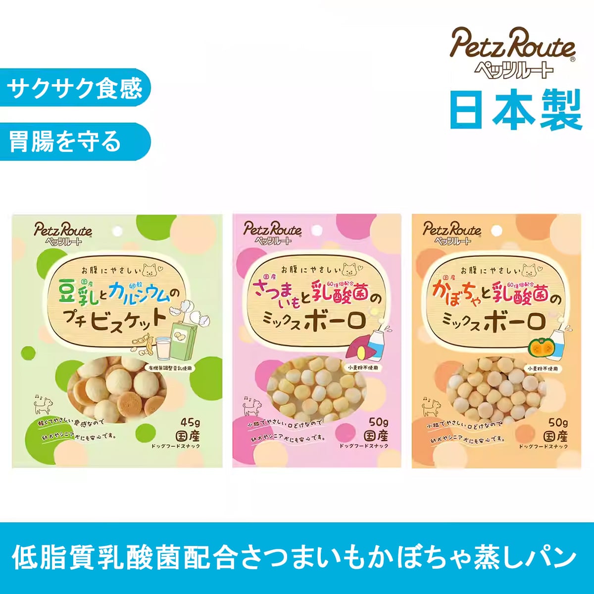 愛犬のおやつタイム、喜ばせたいけれど、お腹が弱くて、カロリーも気になる…。そんなジレンマを、国産素材の優しいおやつが解決します。低脂肪で、お腹に嬉しい乳酸菌入り。