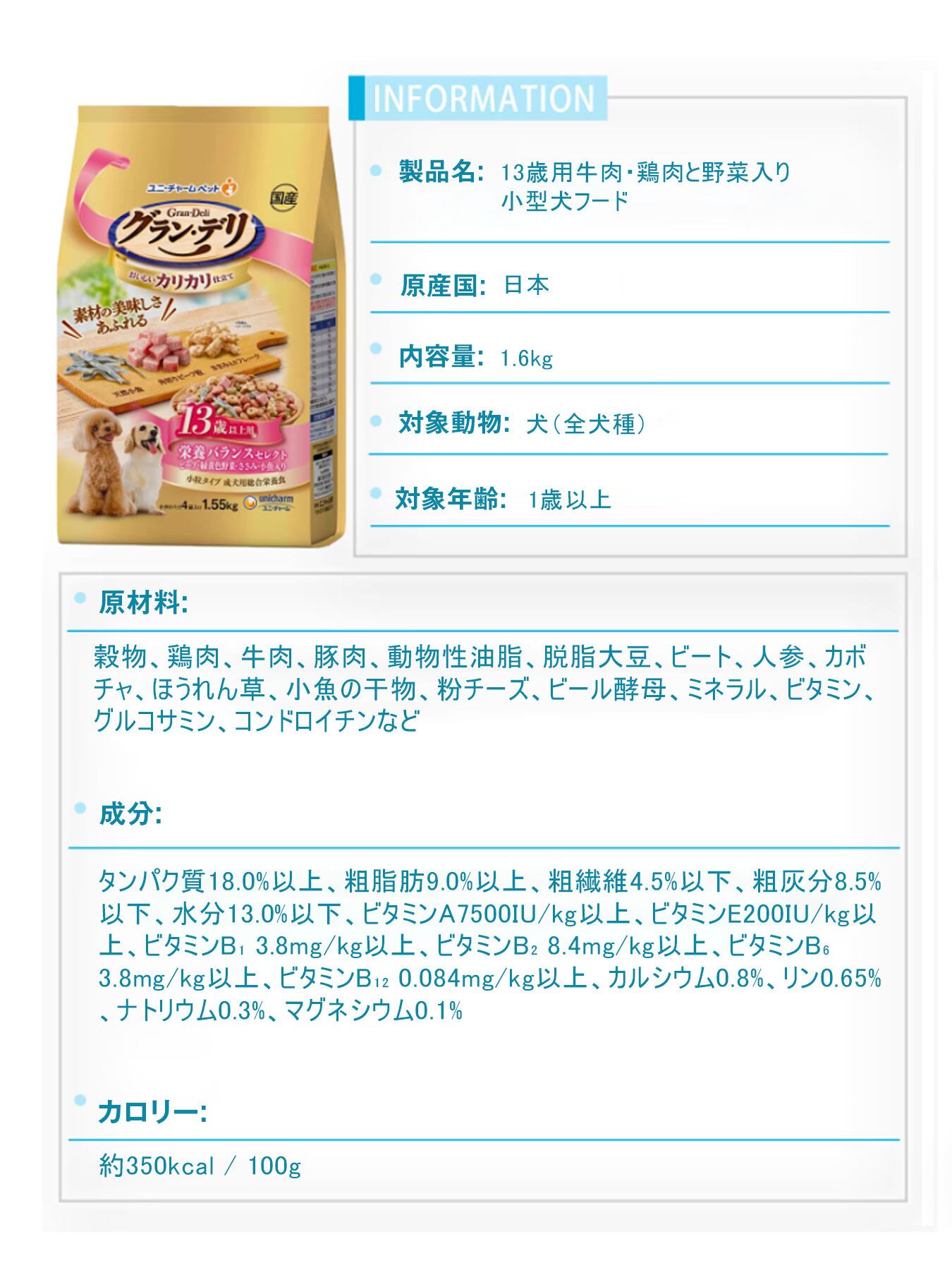 ユニ・チャーム 低脂肪 シニア犬用ドッグフード - 牛肉・鶏肉・野菜・チーズ入り 好き嫌いが多い犬に
