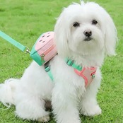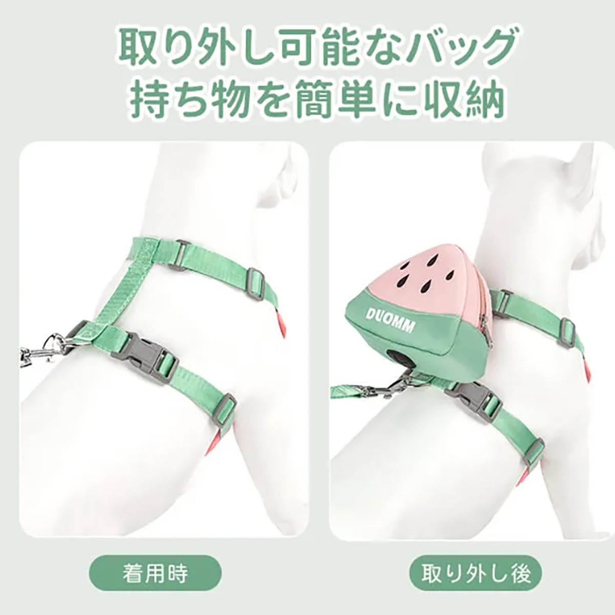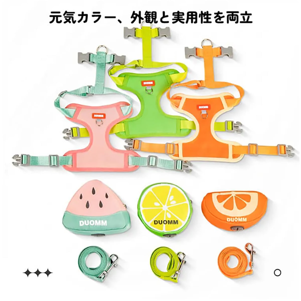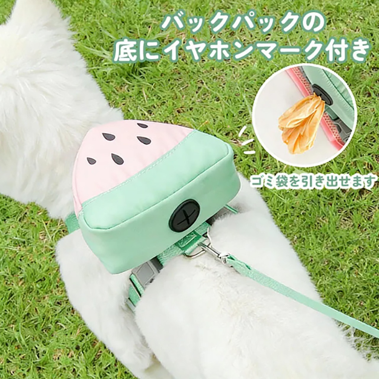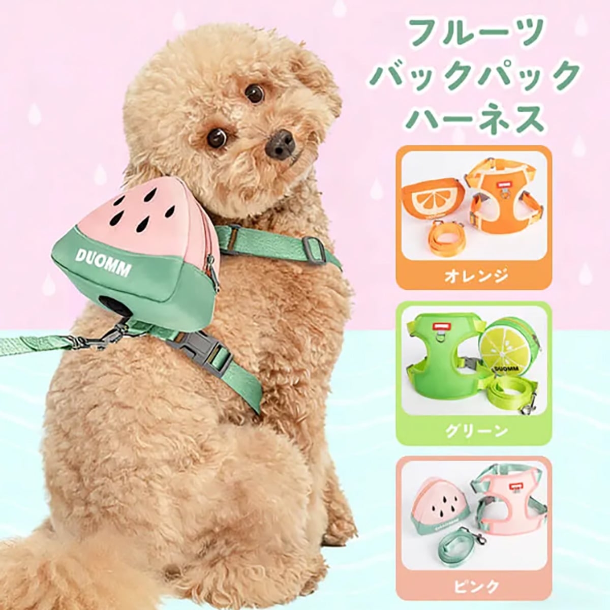 犬用ハーネス リュック付き フルーツ柄 取り外し可能 胴輪 通気性 メッシュ マナー袋出し口付き 小物入れ 散歩 負担軽減 かわいい おしゃれ 小型犬 中型犬 猫 抜けにくい ペット用品