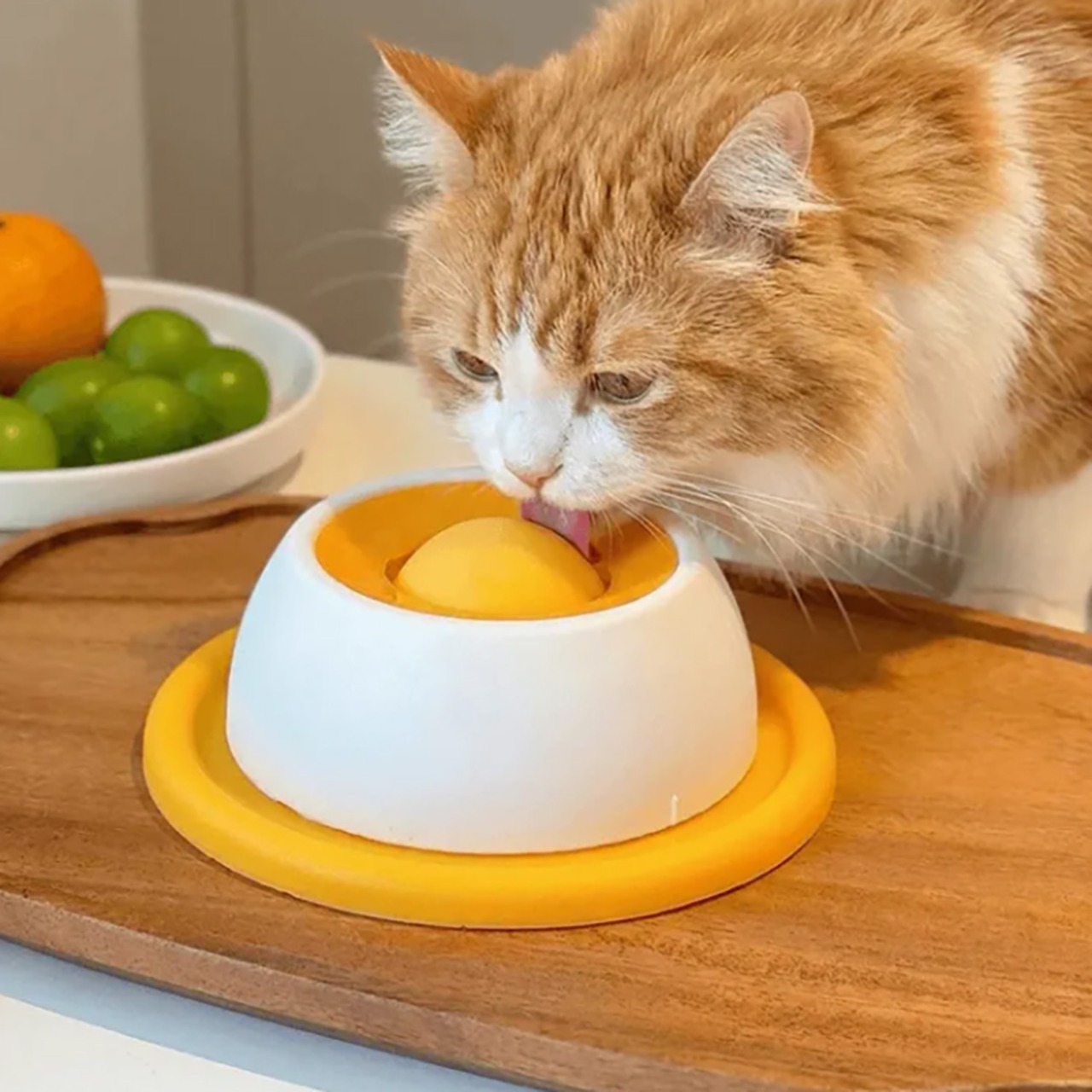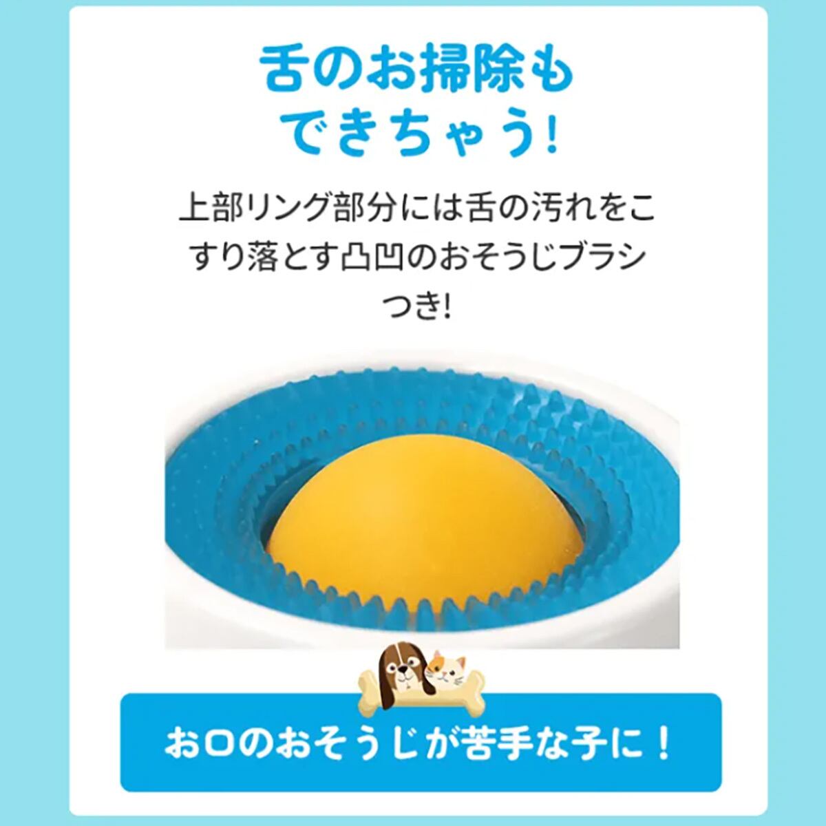 「味覚玉」は、液体フードを少しずつ舐めて楽しむ新感覚の早食い防止食器です。早食いを防ぎ、愛犬・愛猫の食事の満足度をアップ。上部の凸凹ブラシで、食事をしながら舌のケアも同時に叶えます。低重心設計で倒れにくく、縁が高いので床を汚さず清潔。毎日のごはんタイムが、もっと楽しく健康に。