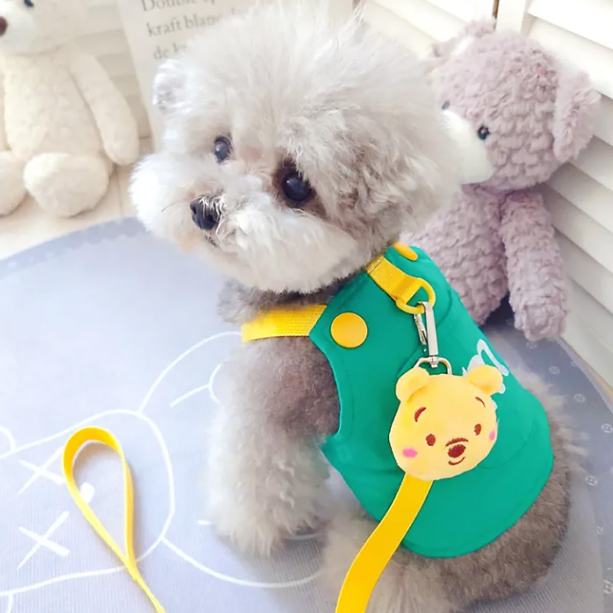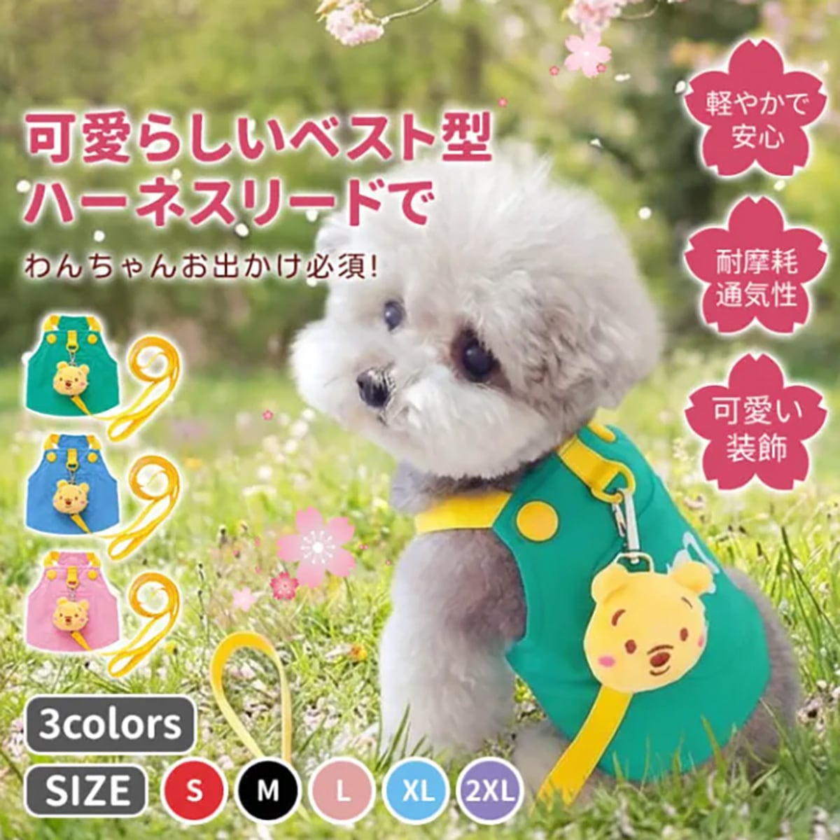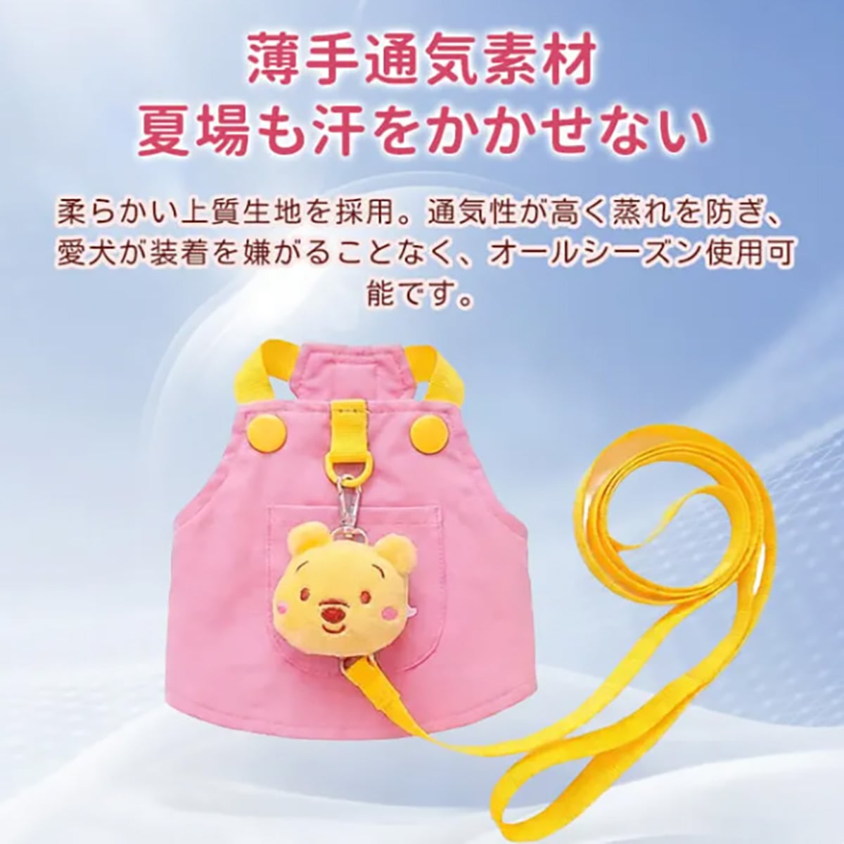 犬用ハーネス リードセット ベスト型 くまのプーさん ぬいぐるみ付き 可愛い 軽量 通気性抜群 耐摩耗 視認性アップ 散歩 お出かけ 胴輪 小型犬 中型犬 抜けにくい おしゃれ ペット用品