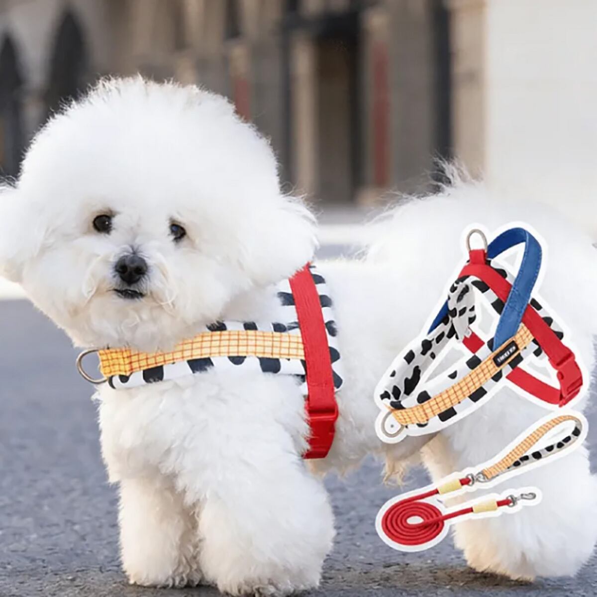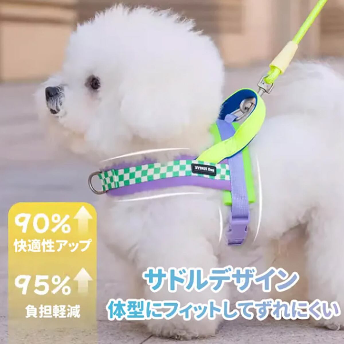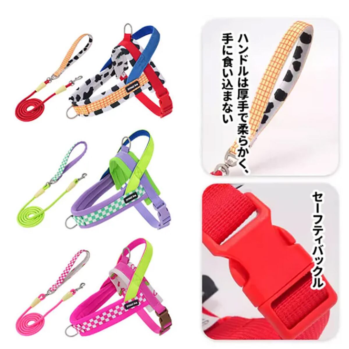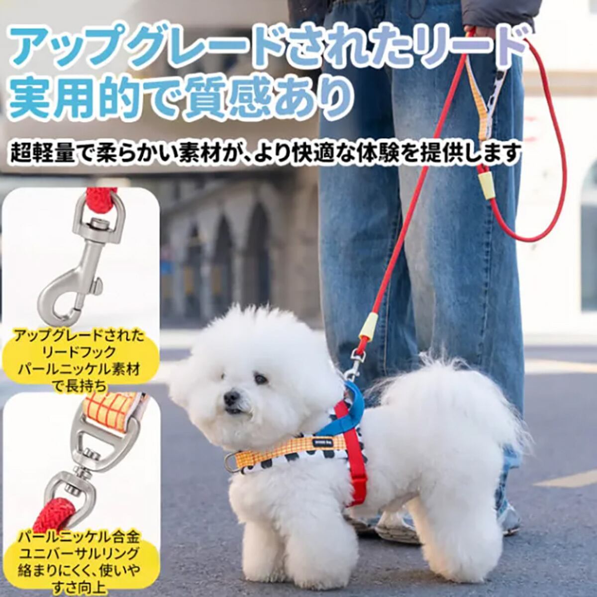 犬用ハーネス 猫 胴輪 サル型 ベストタイプ 超軽量 リードセット 通気性抜群 蒸れない 肌に優しい 毛を挟まない 絡まり防止 パールニッケル合金 散歩 お出かけ かわいい
