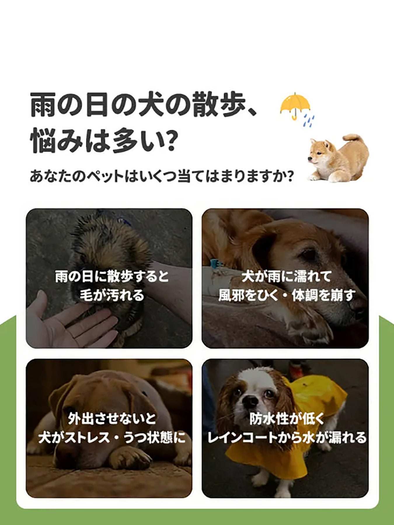 雨の日のお散歩も、これ一枚で妥協なし。ZOZOのケープ型レインコートは、全身を包み込む360°防水設計。透明なフード付きで視界を遮らず、愛犬も安心して歩けます。取り外し可能なお腹カバーは、短足のワンちゃんの泥跳ね防止に最適。高密度PUコーティングで豪雨にも強く、蒸れにくい速乾素材を採用。機能性と快適さを両立した、梅雨時期の必須アイテムです。