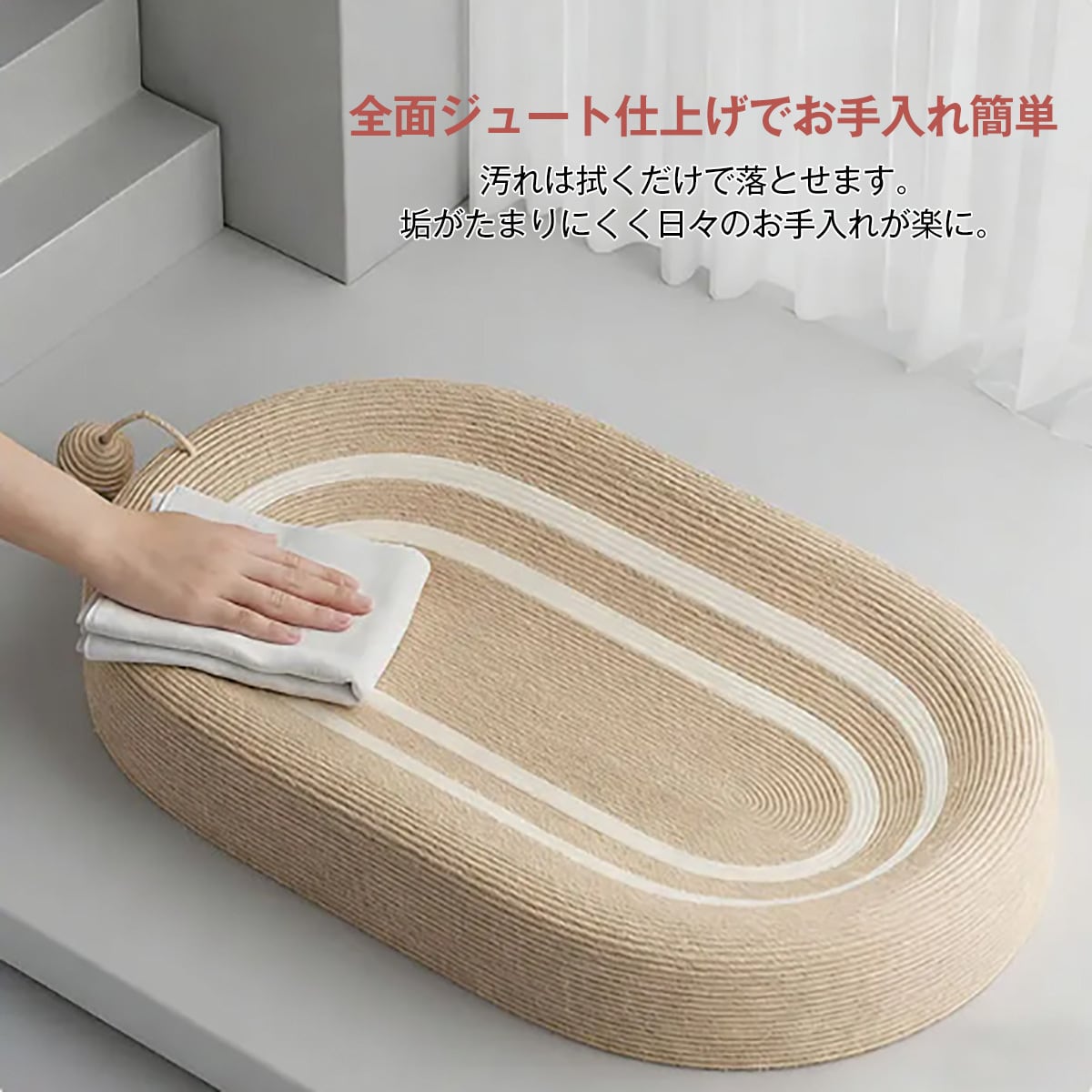 ・品名:椅円形シザル麻キャットスクラッチポ一ド