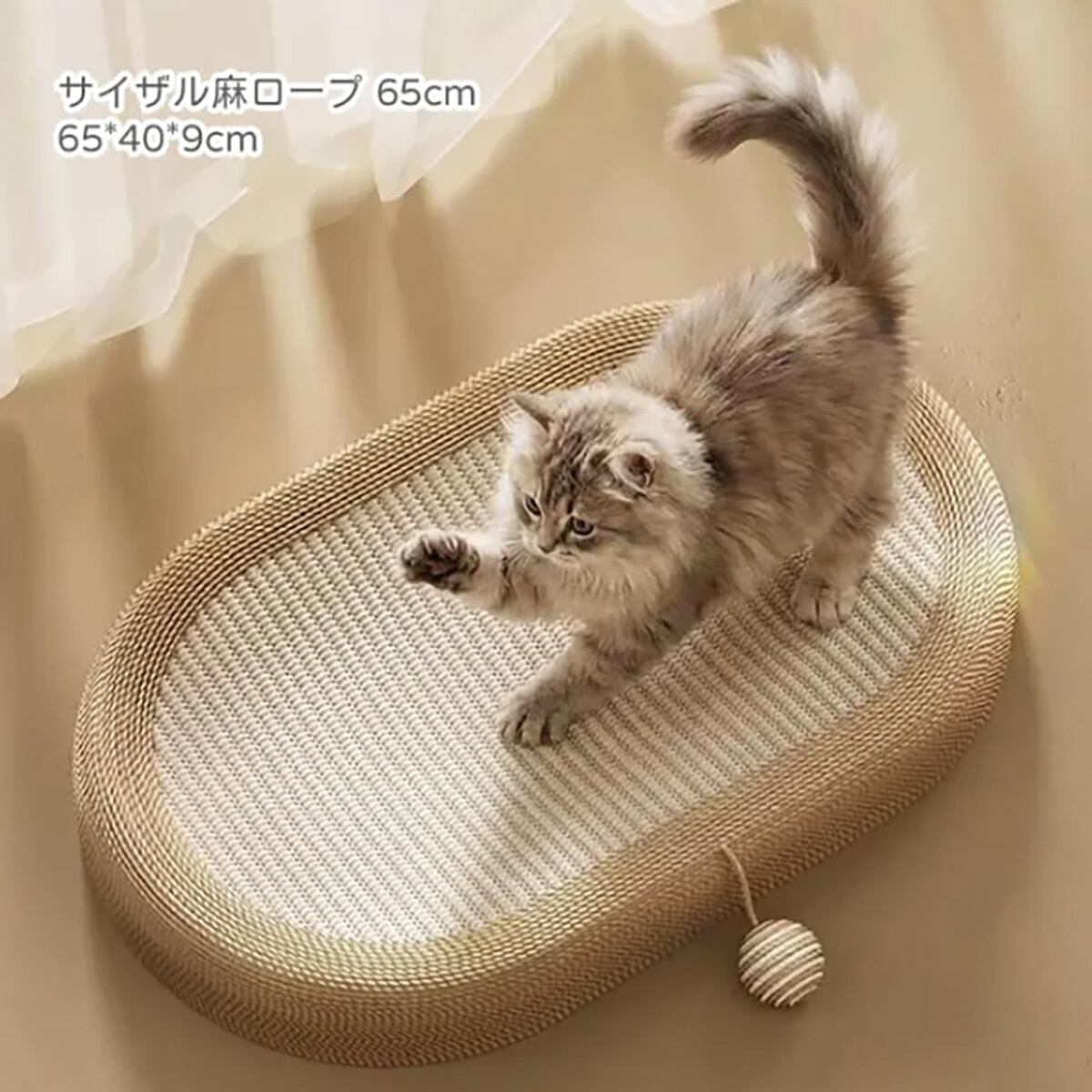猫ベッド 爪とぎ 爪研ぎ サイザル 麻 耐摩耗 1台2役 大型猫 65cm 広々 キャットハウス ボール付き 遊び 休憩 曲線フィット 滑り止め オールシーズン 丈夫 天然ジュート 室内用