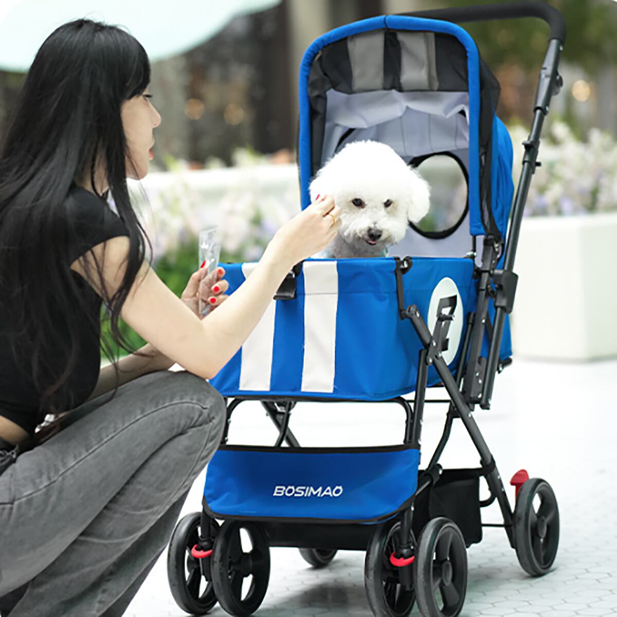 ・【360度回転のダブル前轮】 狭い道や曲がり角でもストレスなくスムーズに操作可能。路面からの振動を軽減し、ワンちゃんに快適な乗り心地を提供します。