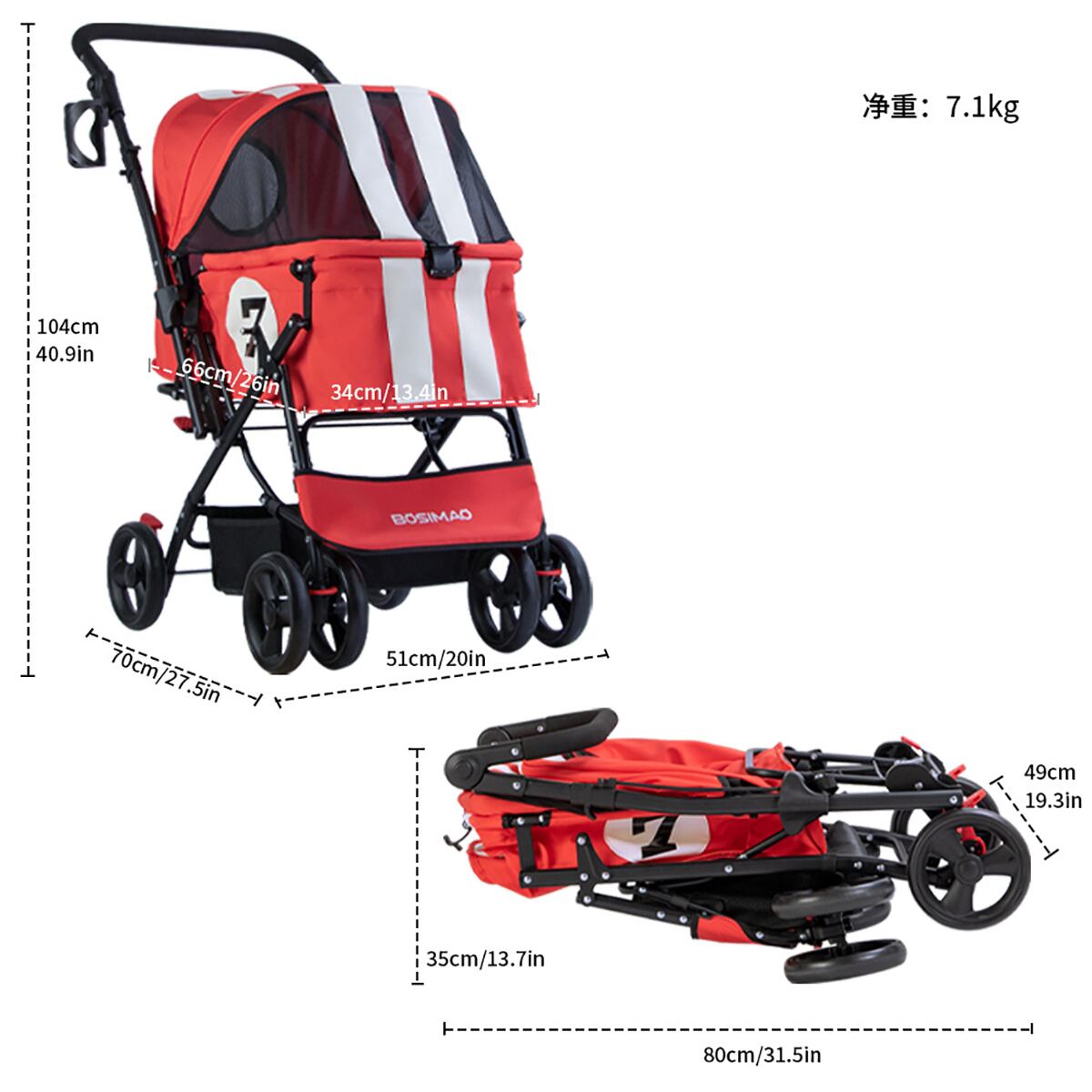 ペットカート 中小型犬・猫用 17.5kgまで対応 対面式 折りたたみ レーシングスタイル お洒落 軽量 散歩 介護 通気性抜群 4輪 360度回転